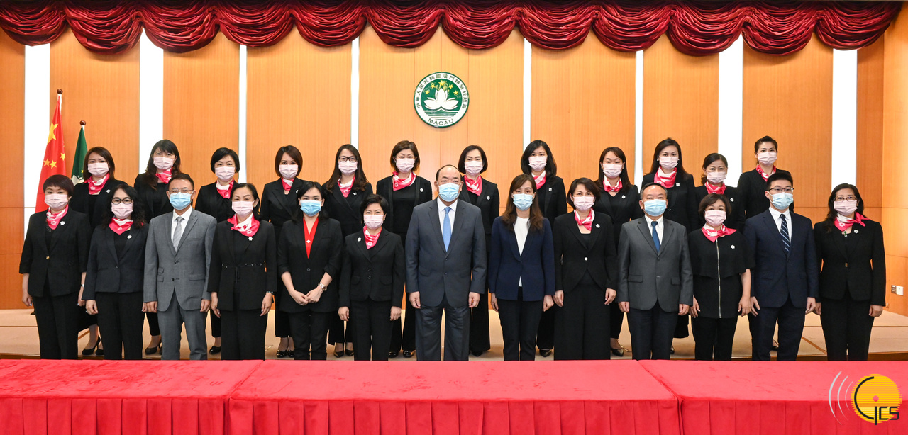 • The Chief Executive, Mr Ho Iat Seng, poses for a group photograph with representatives of the Women's General Association of Macau.