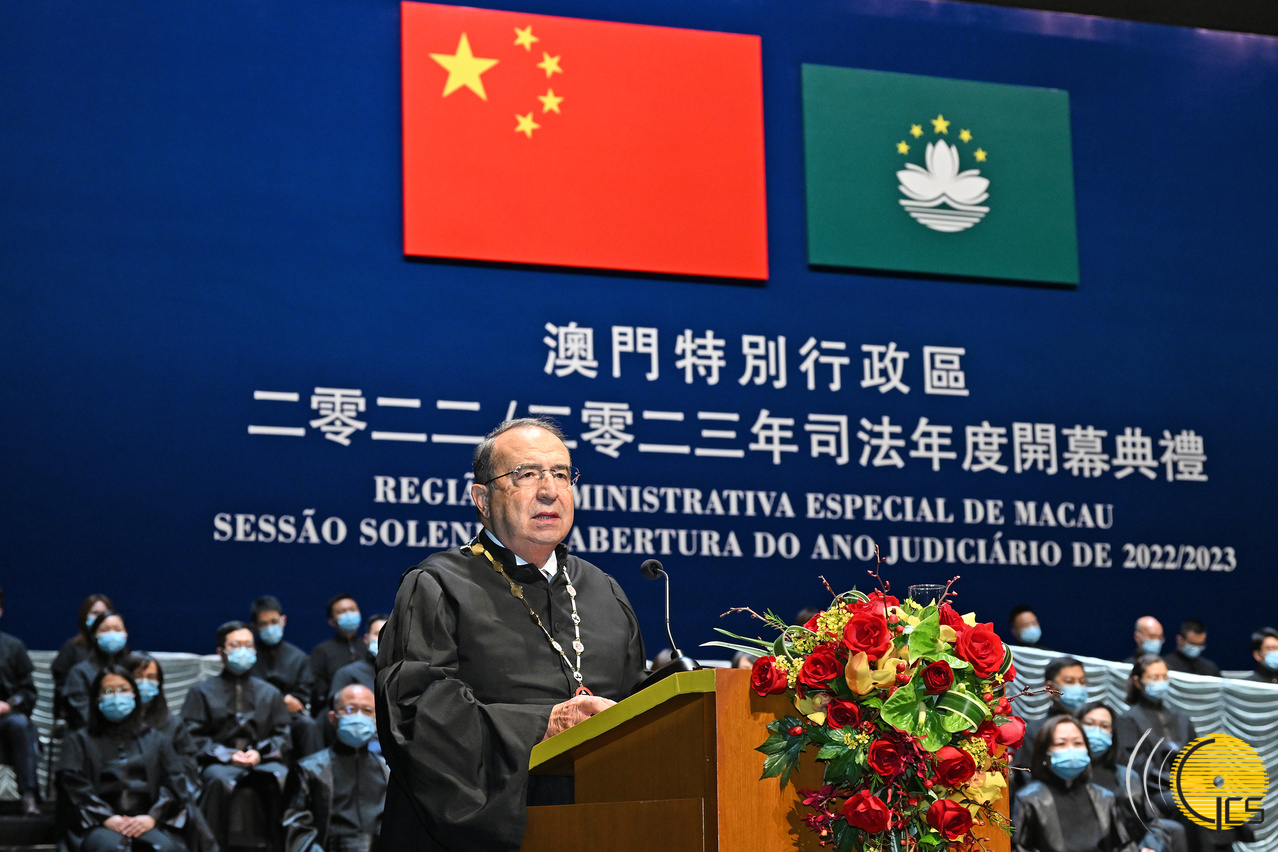 • The President of the Macau Lawyers Association, Mr Jorge Neto Valente, delivers a speech at the opening ceremony of the 2022/2023 Judicial Year.