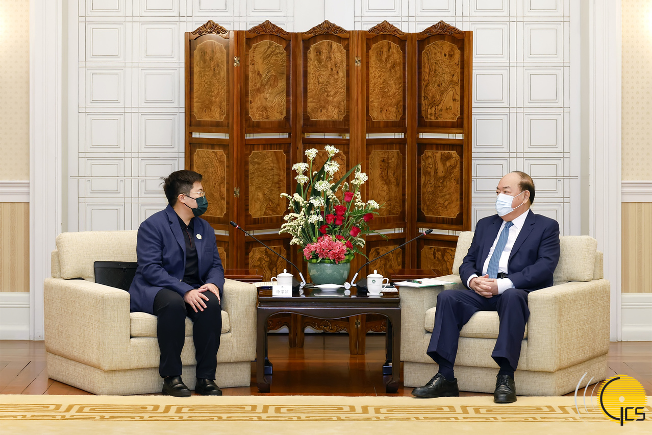 • The Chief Executive, Mr Ho Iat Seng, meets with the President of the Guangxi Associations General Federation of Macau, Ms Chui Ka Weng, at the Government Headquarters.