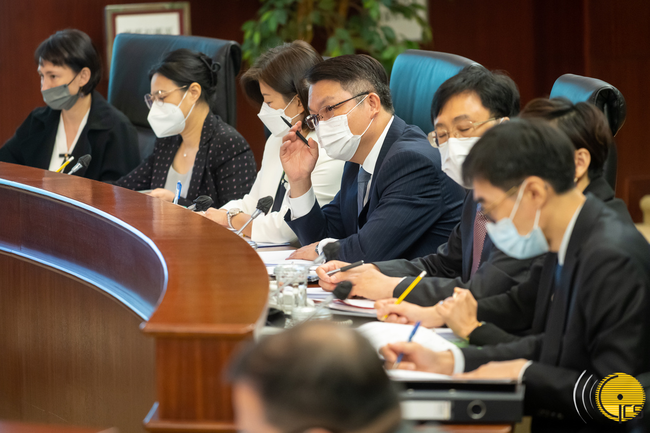 • The Secretary for Economy and Finance, Mr Lei Wai Nong, attends a plenary session of the Legislative Assembly, which holds a first reading and a vote on a bill regarding the legal system for the creation and issuance of currency.