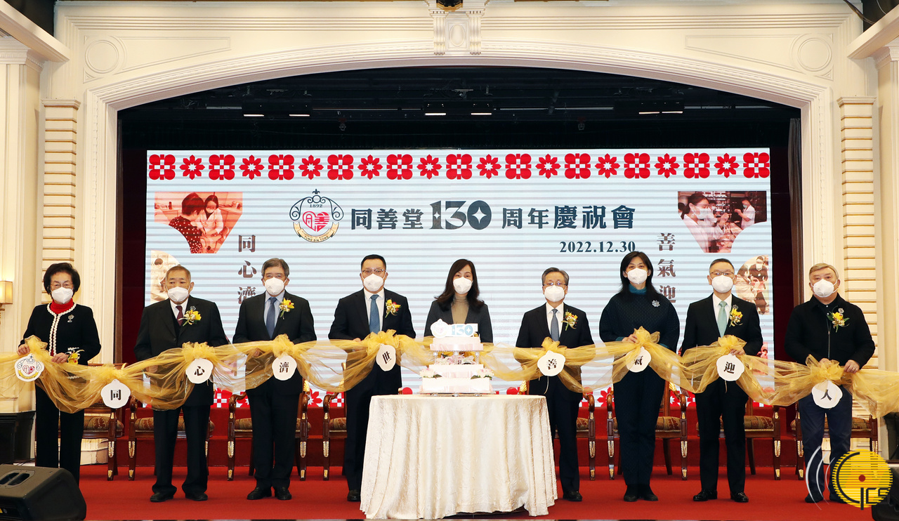 • The Secretary for Social Affairs and Culture, Ms Ao Ieong U, presides over the cake-cutting ceremony at the reception to celebrate the 130th anniversary of the Tung Sin Tong Charitable Society.