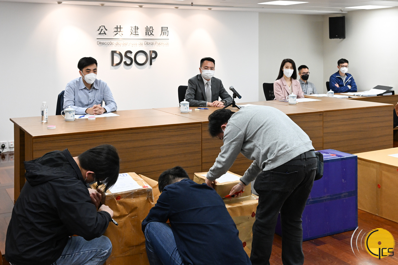 • Officials of the Public Works Bureau open tender documents for the design and construction of the Southern Section of Light Rapid Transit (LRT) East Line.