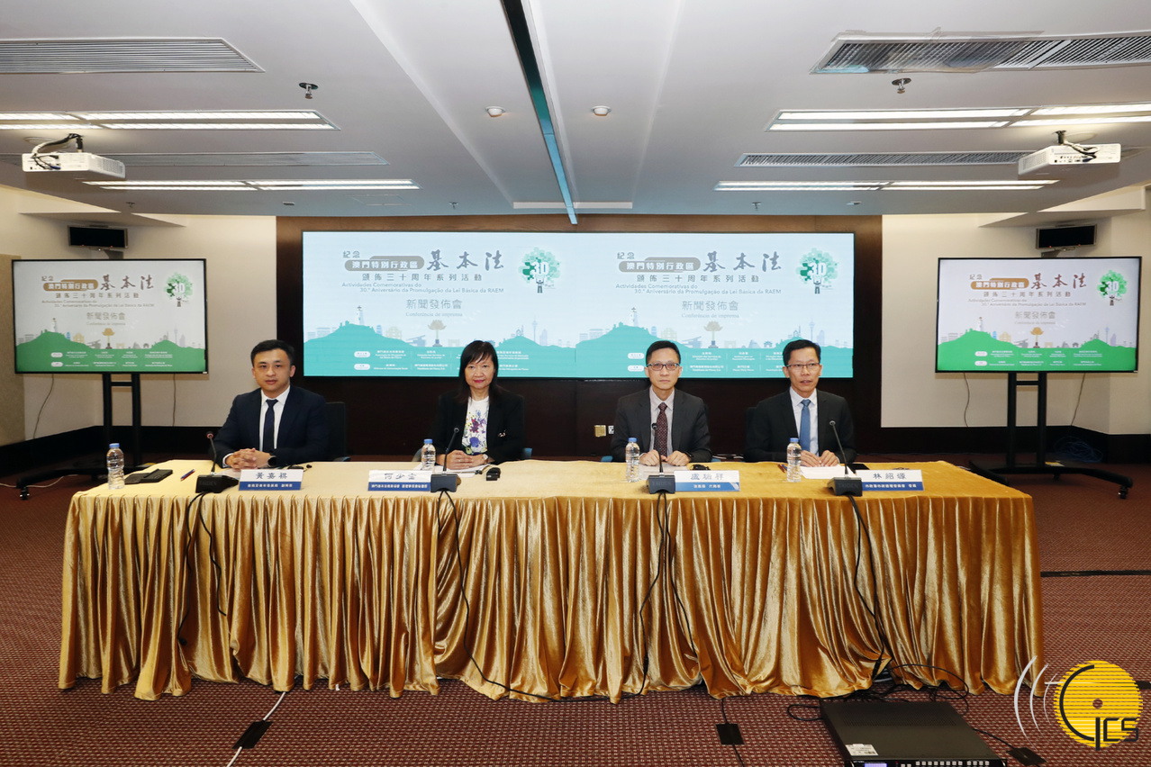 A press conference on a series of activities commemorating the 30th anniversary of the promulgation of the Basic Law of the Macao Special Administrative Region is jointly held by a Macao Basic Law promotion association, the Legal Affairs Bureau, the Municipal Affairs Bureau, and the Education and Youth Development Bureau.