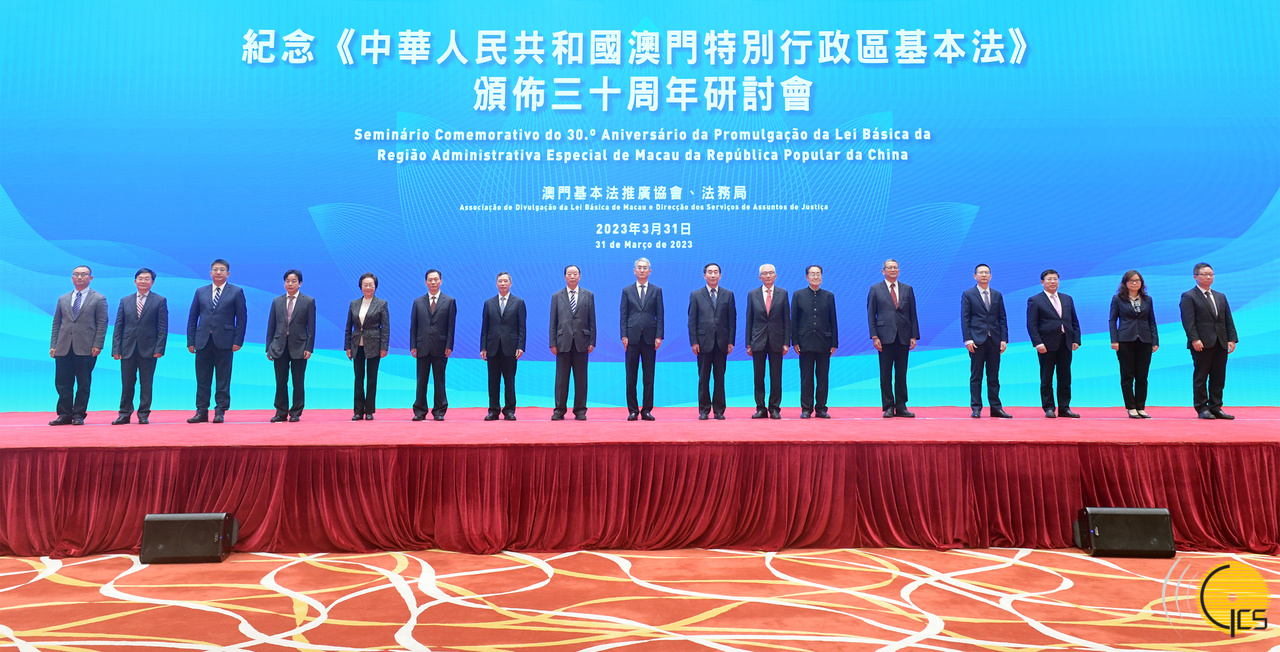 • The Secretary for Administration and Justice, Mr Cheong Weng Chon, attends a seminar to commemorate the 30th anniversary of the promulgation of the Basic Law of the Macao Special Administrative Region of the People's Republic of China.