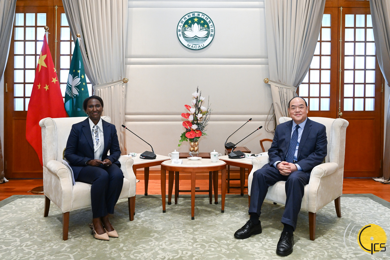The Chief Executive, Mr Ho Iat Seng, meets with the President of the Confederation of Enterprises of the Community of Portuguese-speaking Countries, Ms Nelma Fernandes, at the Government Headquarters in Macao.
