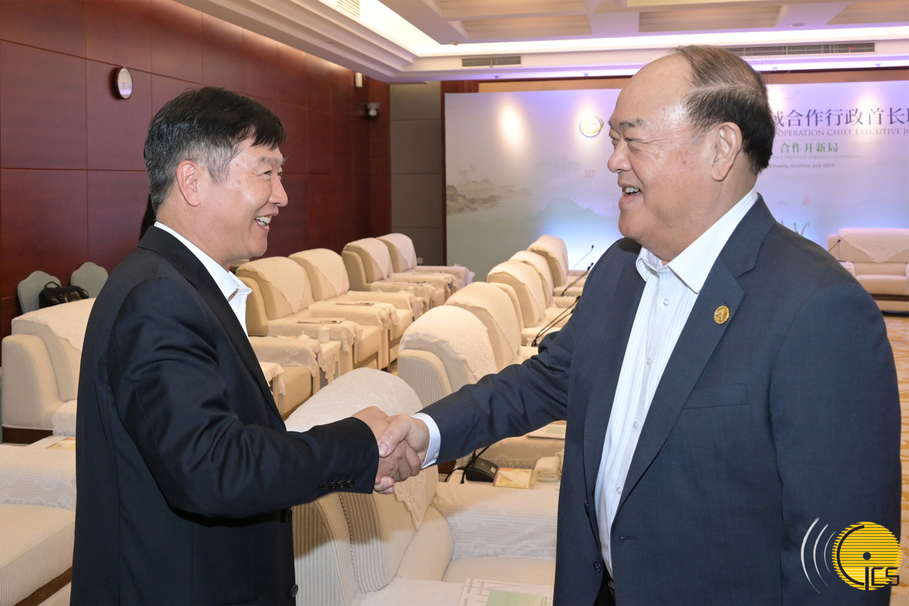 • The Chief Executive, Mr Ho Iat Seng, cordially shakes hands with the Governor of Hainan Province, Mr Liu Xiaoming, during a meeting held in Guiyang, Guizhou Province.