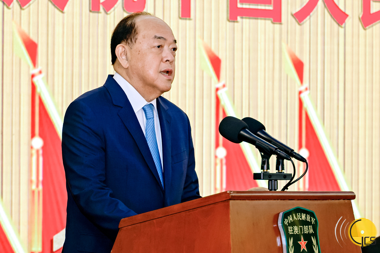 • The Chief Executive, Mr Ho Iat Seng, delivers a speech at a reception held in Macao to mark the 96th anniversary of the founding of the Chinese People's Liberation Army.