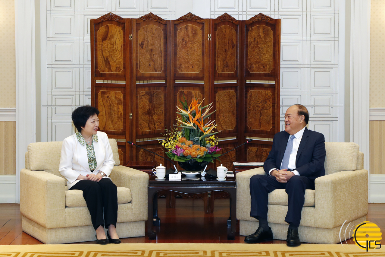 The Chief Executive, Mr Ho Iat Seng, meets with the Party Secretary and Vice Chairperson of the China Soong Ching Ling Foundation, Ms Shen Beili, at Government Headquarters in Macao.