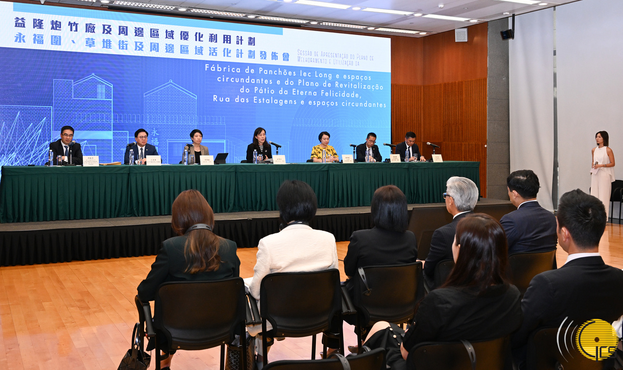 • The Secretary for Social Affairs and Culture, Ms Ao Ieong U, attends a press conference regarding the revitalisation and optimisation plan of the areas around the Iec Long Firecracker Factory, Pátio da Eterna Felicidade and Rua das Estalagens .