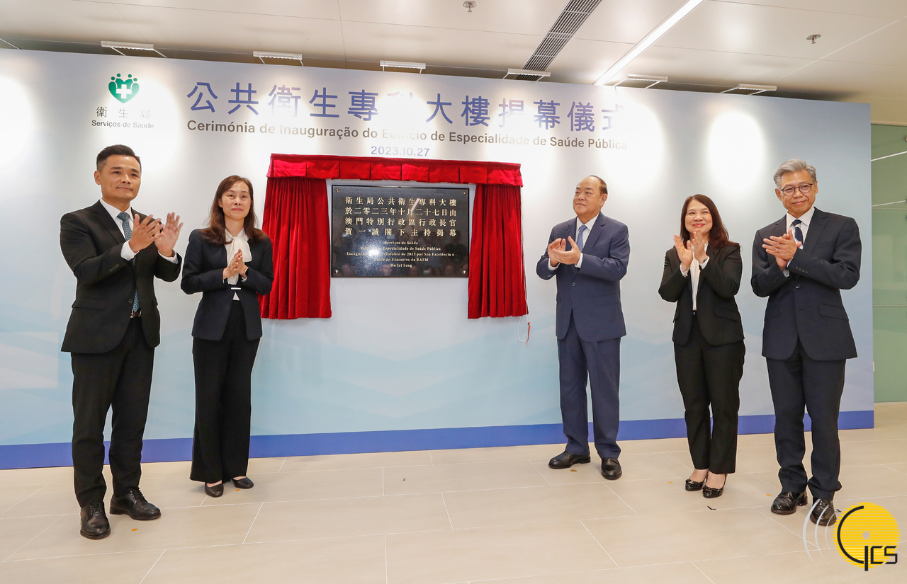 The Chief Executive, Mr Ho Iat Seng, presides over the unveiling ceremony of the Public Health Specialist Building.