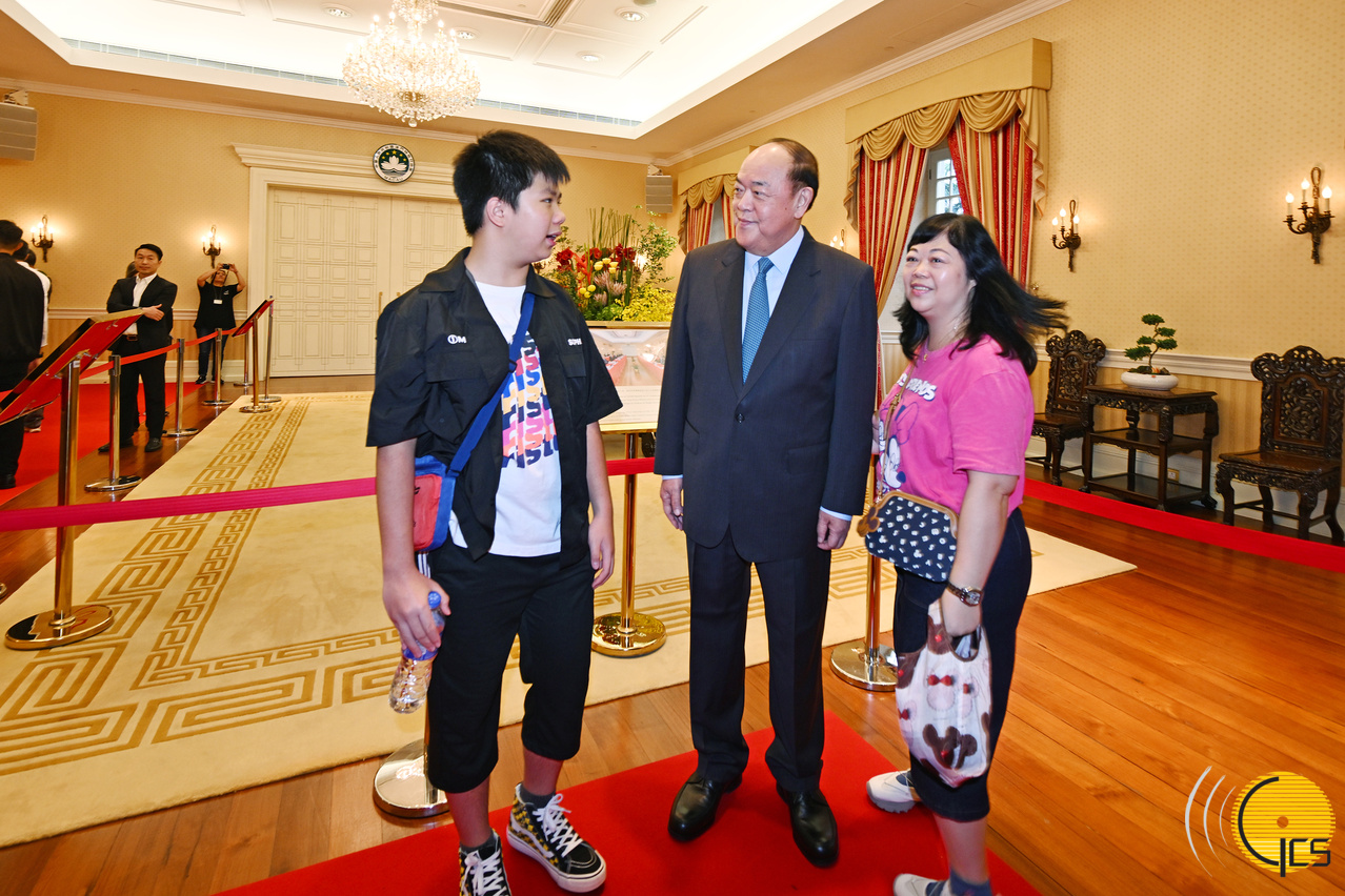 The Chief Executive, Mr Ho lat Seng, meets and poses for photo with visitors at the 2023 Government Headquarters Open Day.