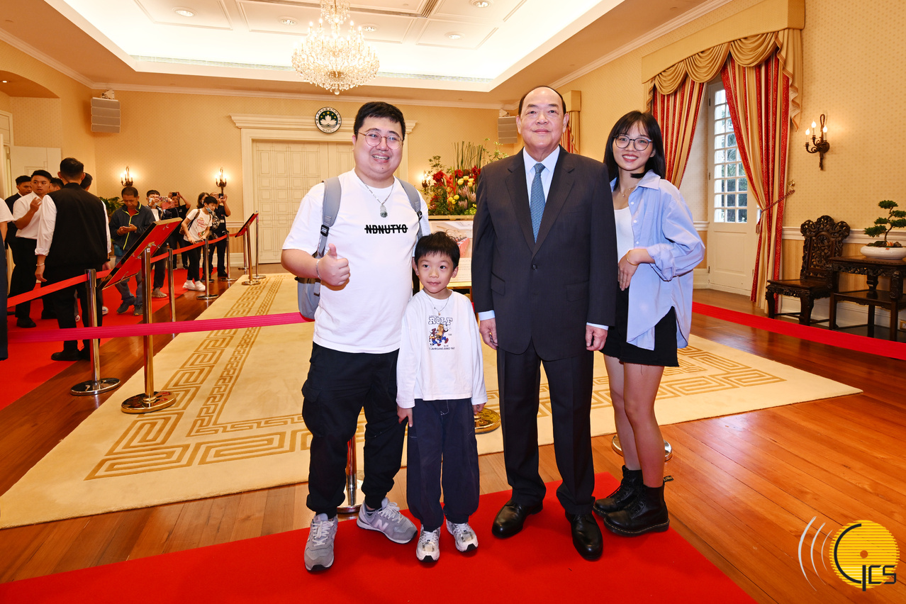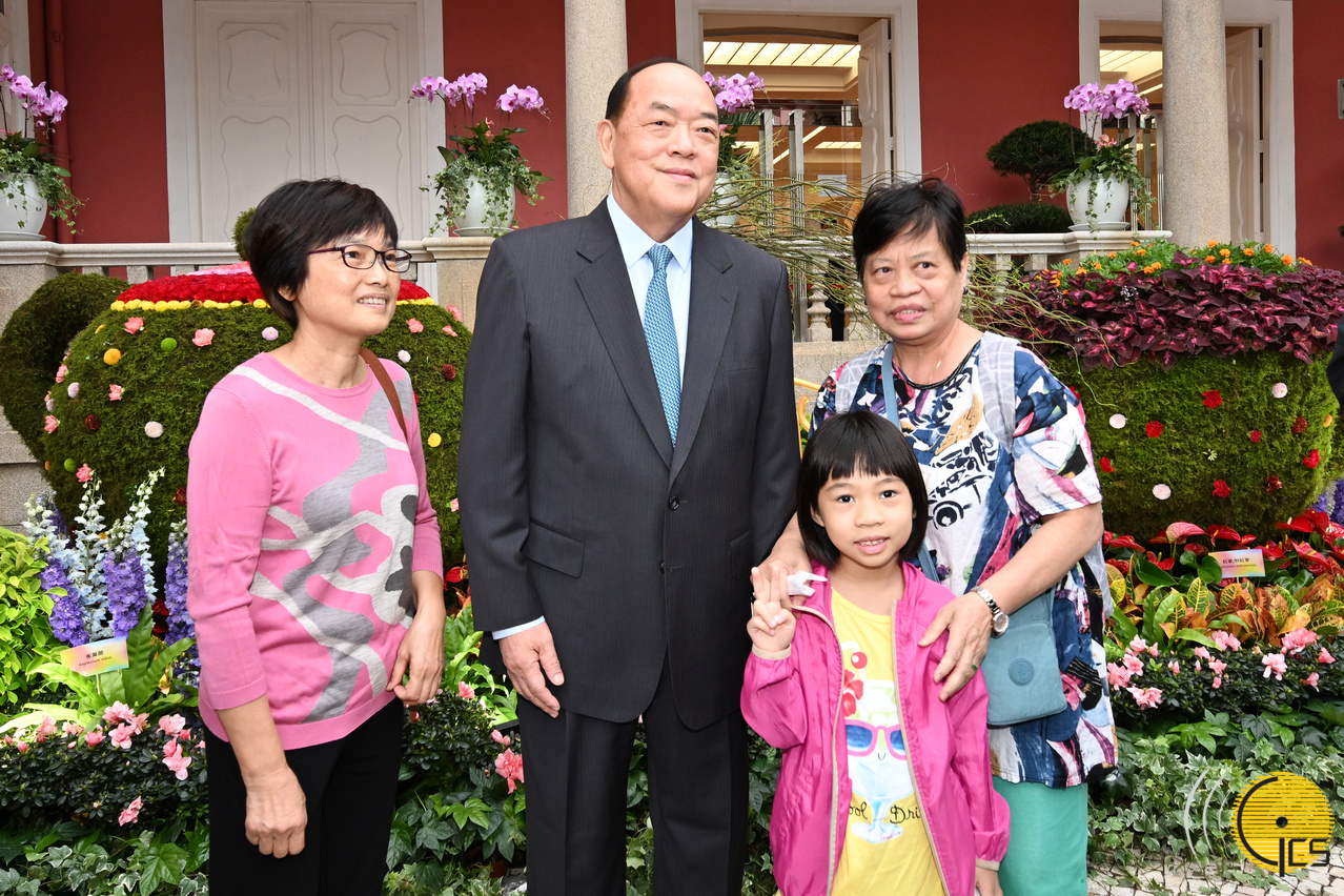 • The Chief Executive, Mr Ho Iat Seng, poses for group photos with visiting families to share the joyful atmosphere of the 2023 Government Headquarters Open Day.