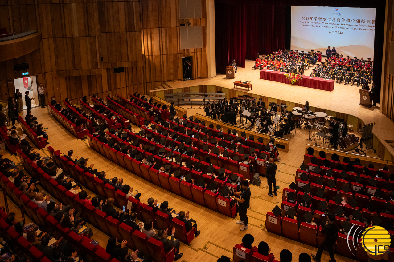 The Secretary for Social Affairs and Culture, Ms Ao Ieong U, attends the Honorary Degrees and Higher Degrees Congregation of the University of Macau, on behalf of the Chief Executive.