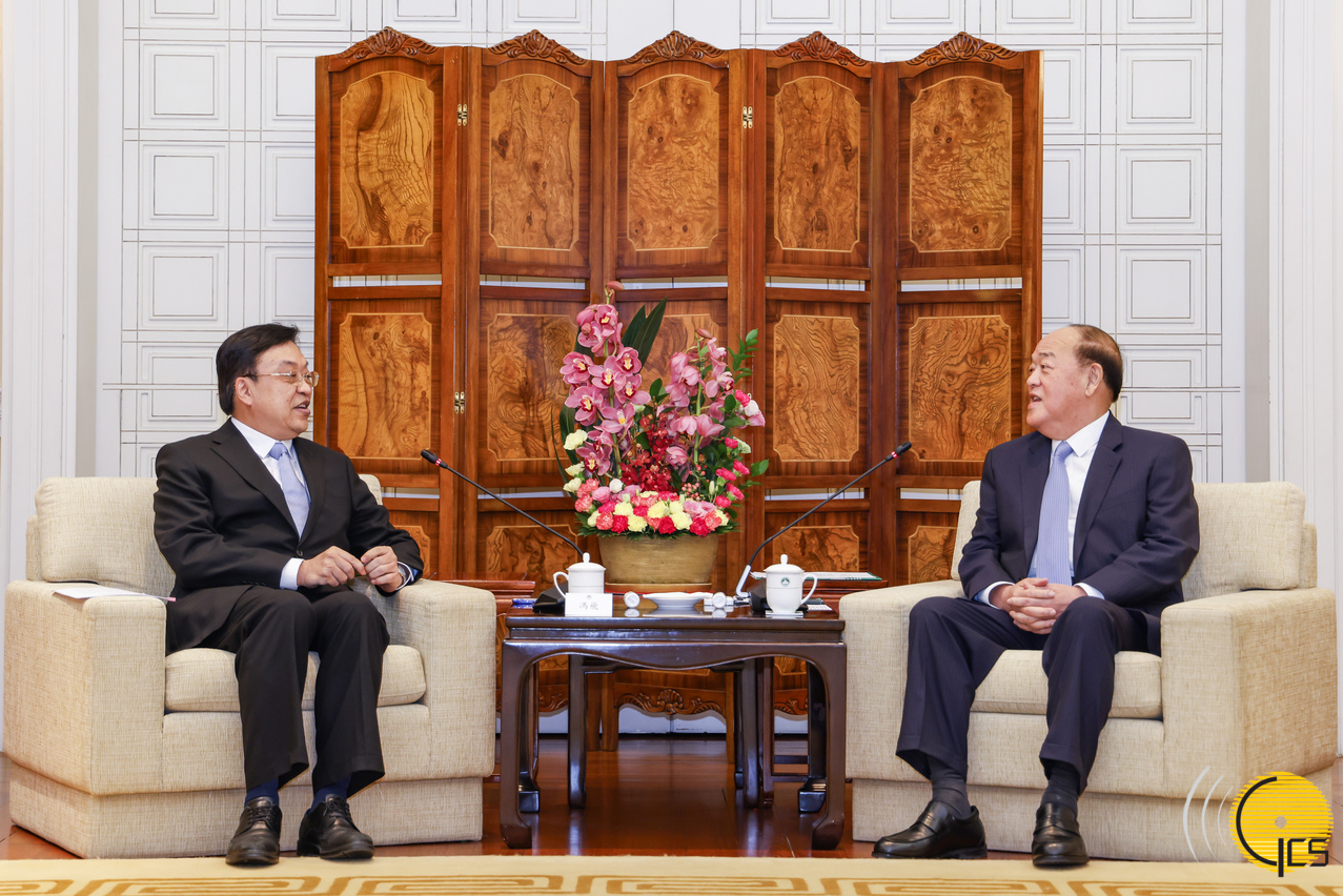 • The Chief Executive, Mr Ho Iat Seng, meets with the Secretary of the CPC Hainan Provincial Committee and Chairman of the Standing Committee of Hainan Provincial People's Congress, Mr Feng Fei, at the Government Headquarters.