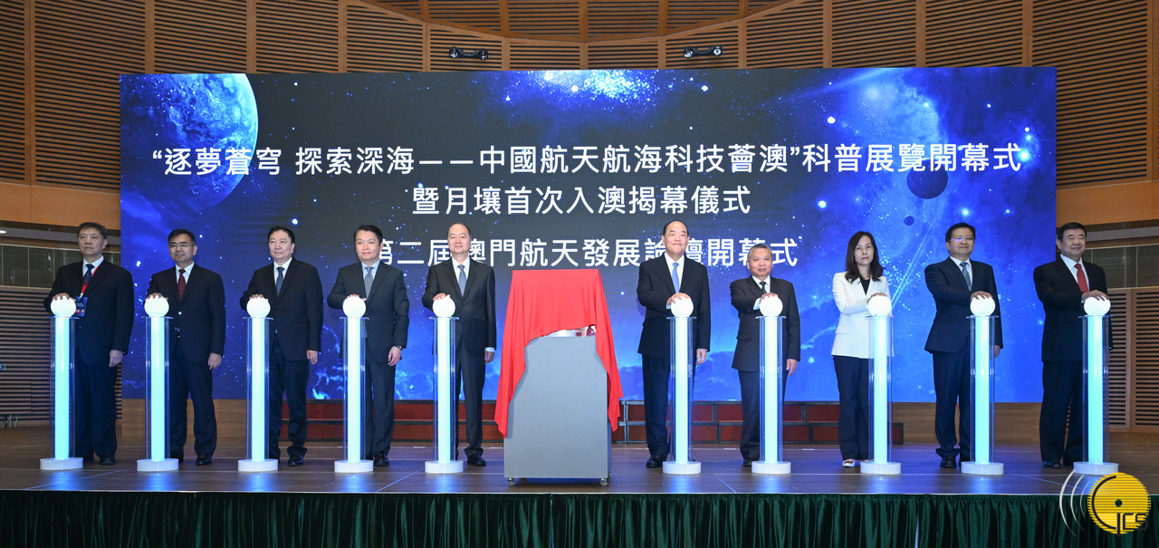 • The Chief Executive, Mr Ho Iat Seng, and guests preside over the opening ceremony of an exhibition on the space exploration and maritime endeavours of China, plus the first arrival of lunar soil in Macao and the Second Aerospace Development Forum of Macao.