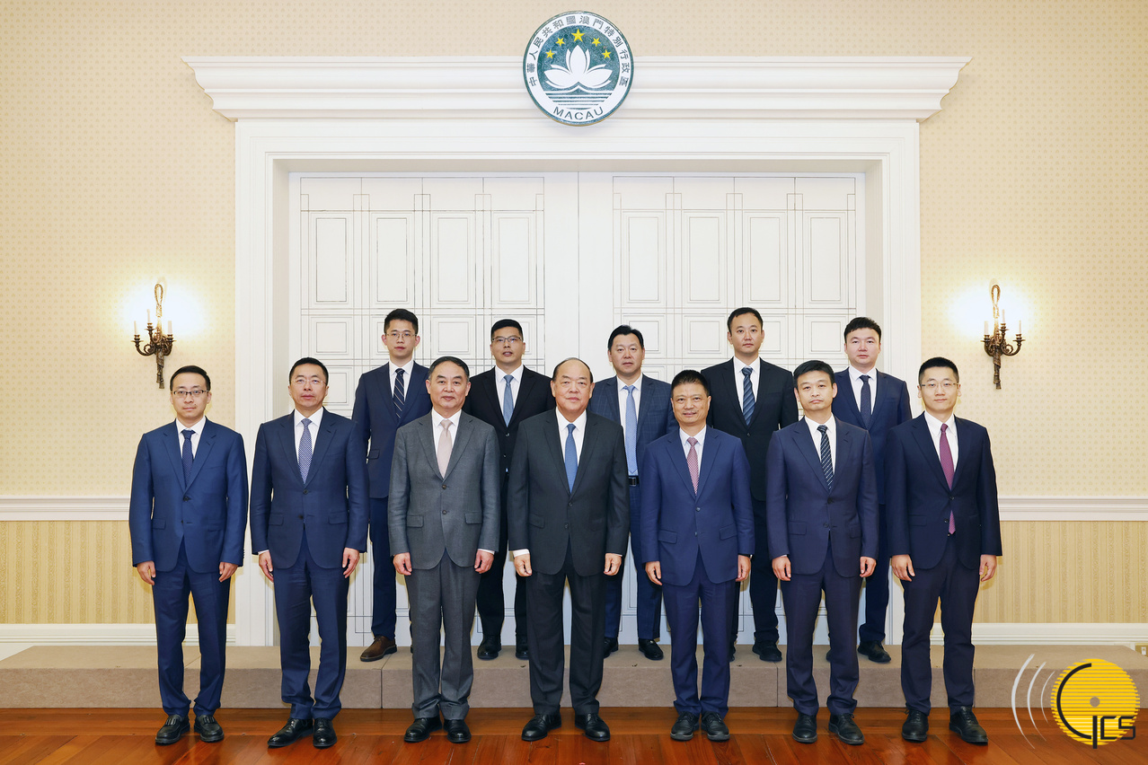 • The Chief Executive, Mr Ho Iat Seng, poses for a group photograph with Deputy Secretary of the Party Leadership Group and President of China State Construction Engineering Corporation, Mr Zhang Zhaoxiang, during a meeting at the Government Headquarters.