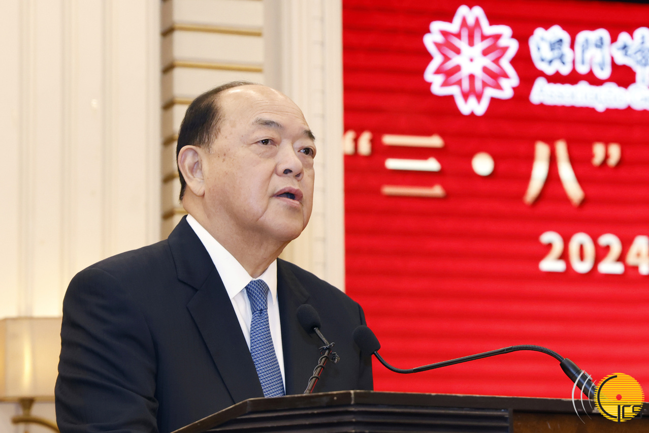 • The Chief Executive, Mr Ho Iat Seng, delivers a speech at a reception to celebrate International Women's Day, hosted by the Women's General Association of Macau.