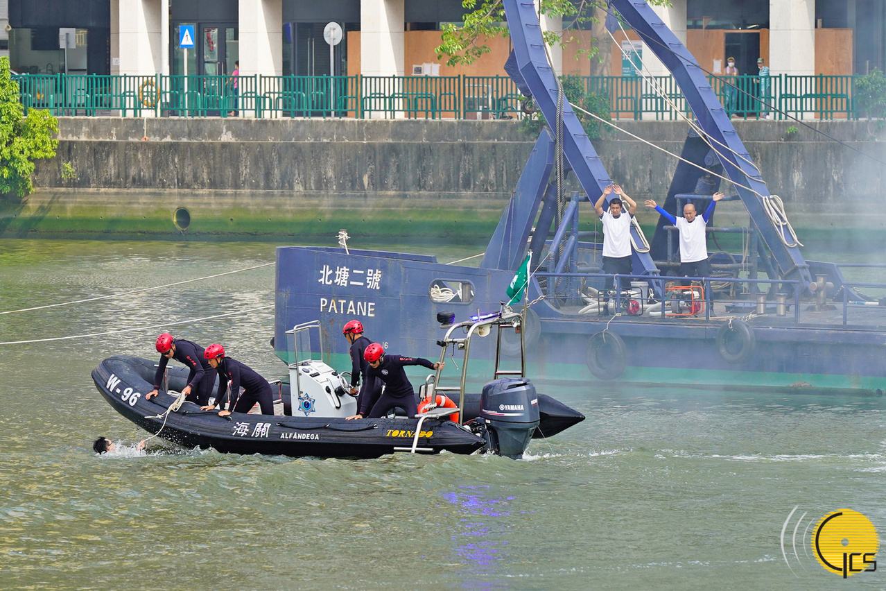 • The Macao Customs Service Diving Team operates round the clock and currently has 22 members. It is mainly responsible for rescue work – such as in the event of ship collisions or sinkings, people falling into the sea, and other personal-rescue situations – inside the waters managed by the Macao Special Administrative Region (MSAR). In addition, the Diving Team is also responsible for rescue work at artificial lakes and reservoirs within the MSAR.