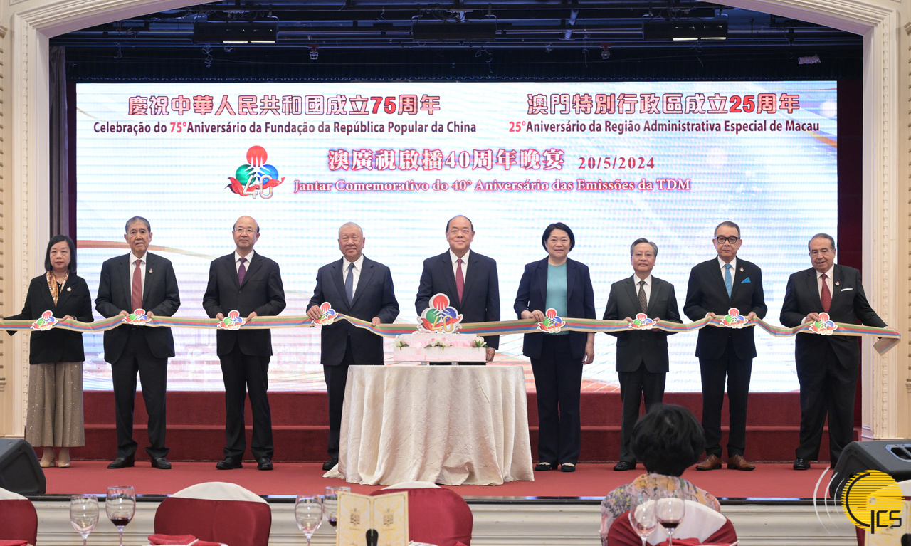 • The Chief Executive, Mr Ho Iat Seng, and other guests presided over the cake-cutting ceremony at a dinner banquet to celebrate the 40th anniversary of Teledifusão de Macau (TDM).