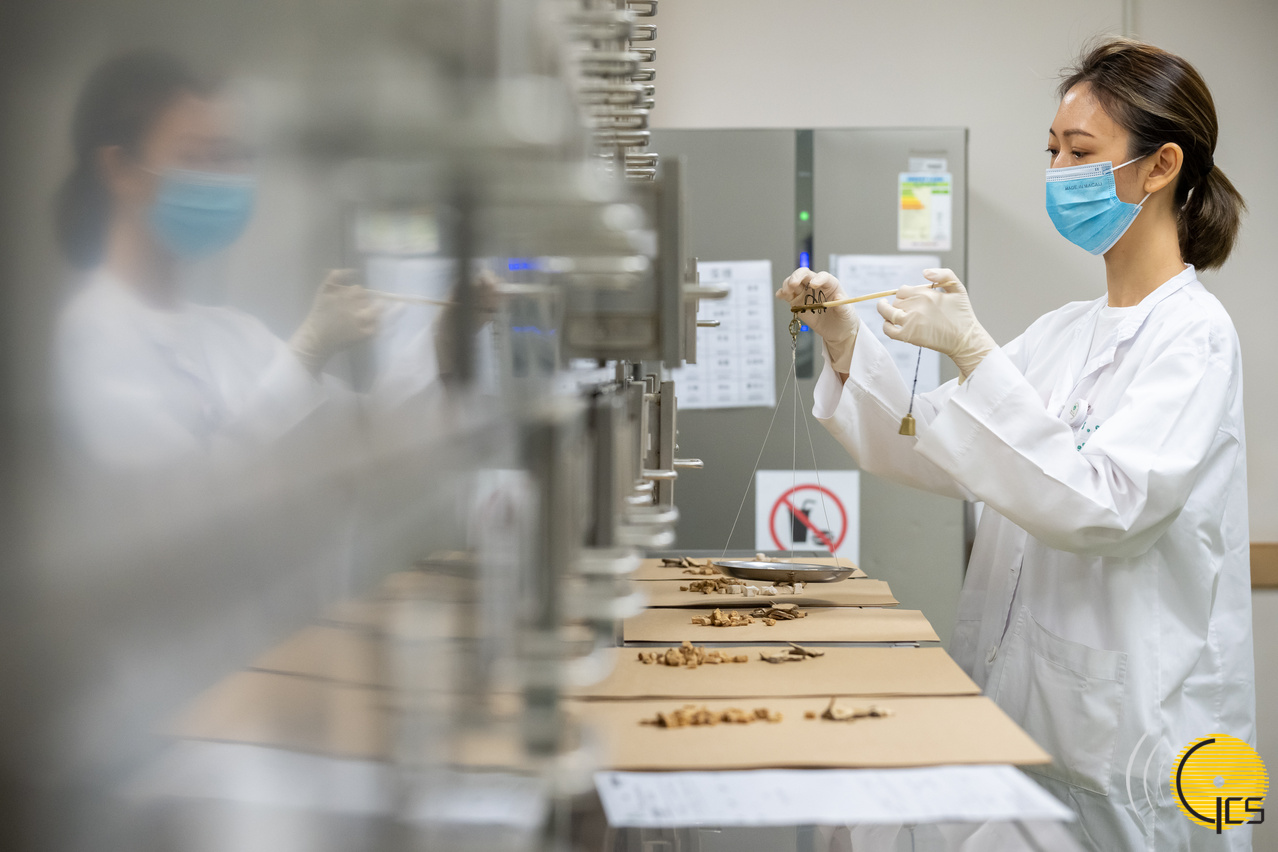 • A traditional Chinese medicine pharmacist prepares oral medication based on a prescription issued by a doctor of traditional Chinese medicine.