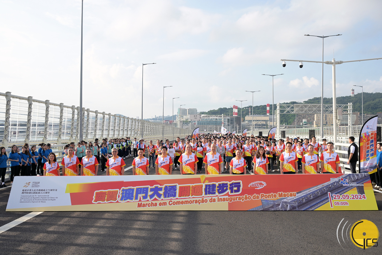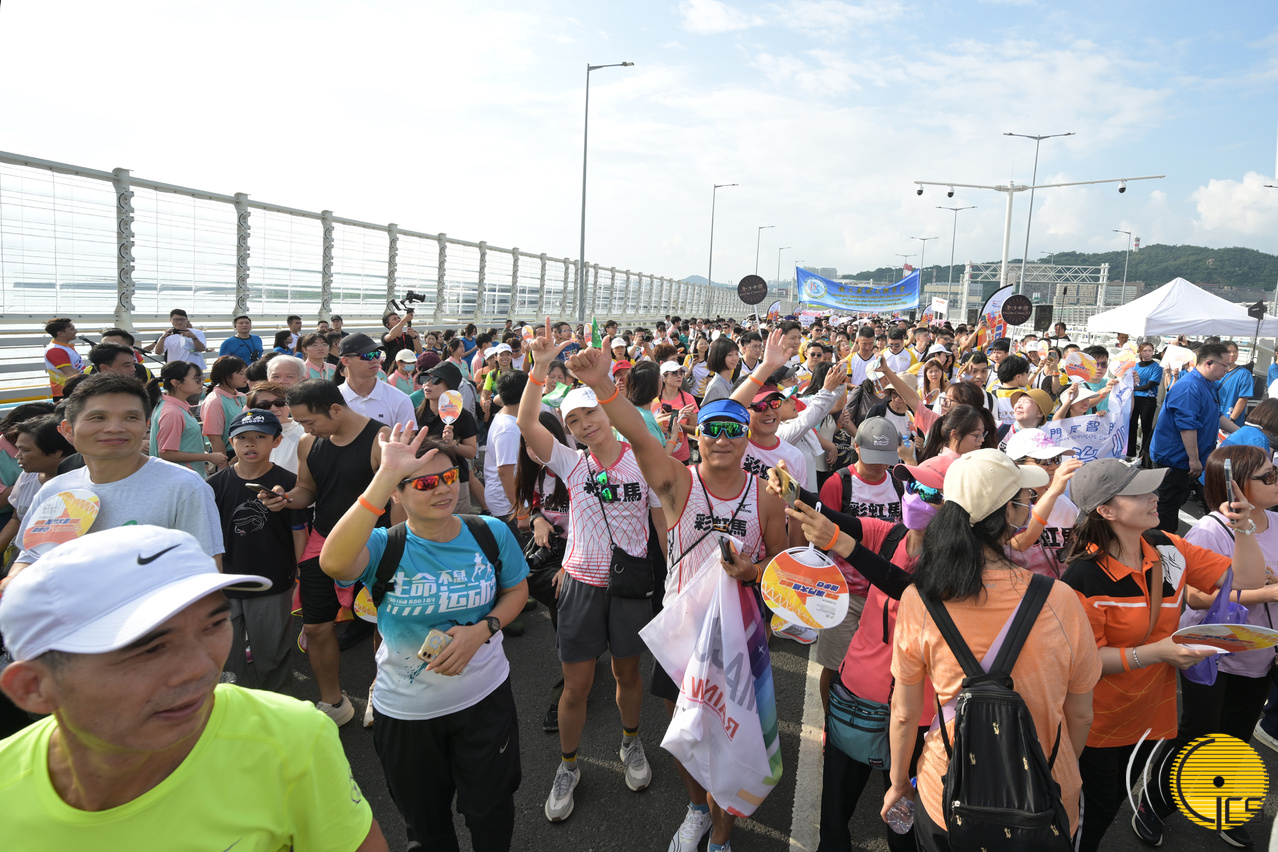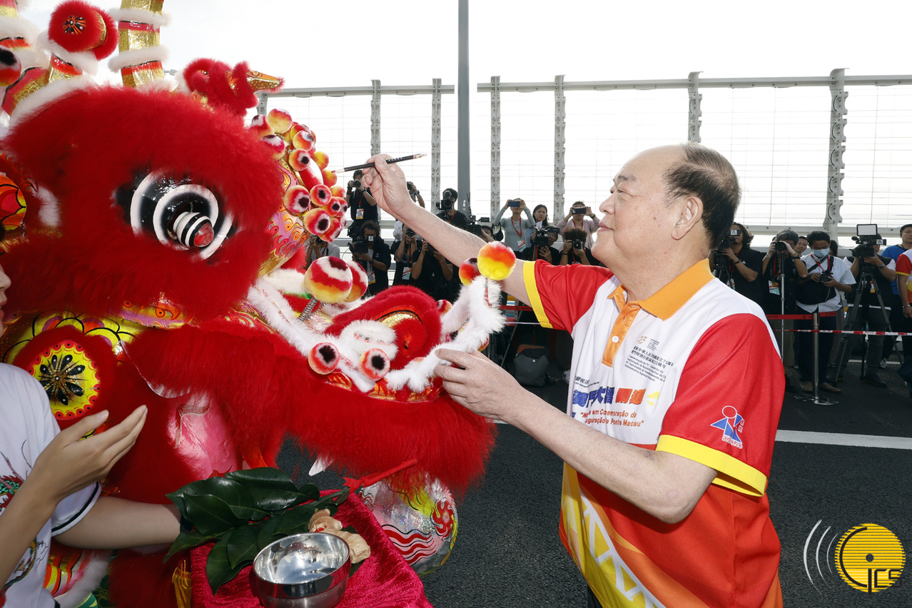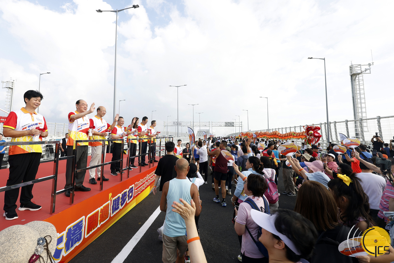 • The Chief Executive, Mr Ho Iat Seng, officiates at the starting ceremony of the march to celebrate the inauguration of the Macao Bridge.