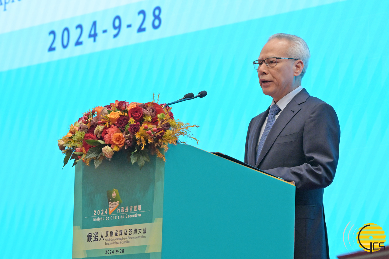 • The candidate of the 2024 Chief Executive Election, Mr Sam Hou Fai, presents his political platform.