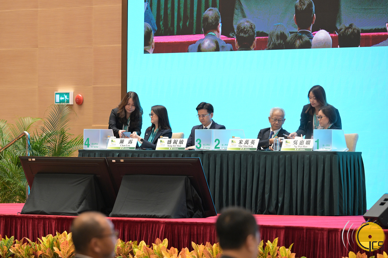 • The candidate of the 2024 Chief Executive Election, Mr Sam Hou Fai, answers questions raised by members of the Chief Executive Election Committee.