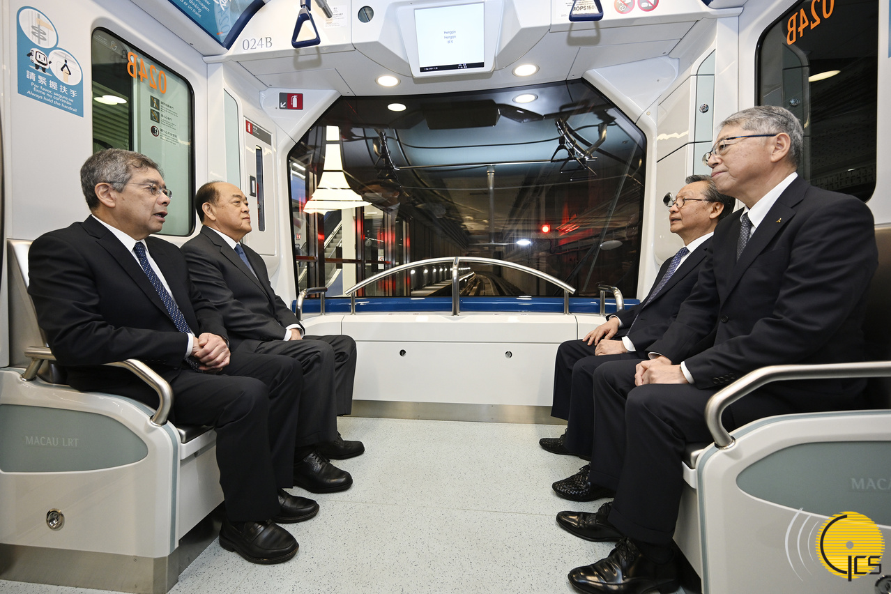 • The Chief Executive, Mr Ho lat Seng, takes a ride on the Hengqin Line of the Light Rapid Transit.