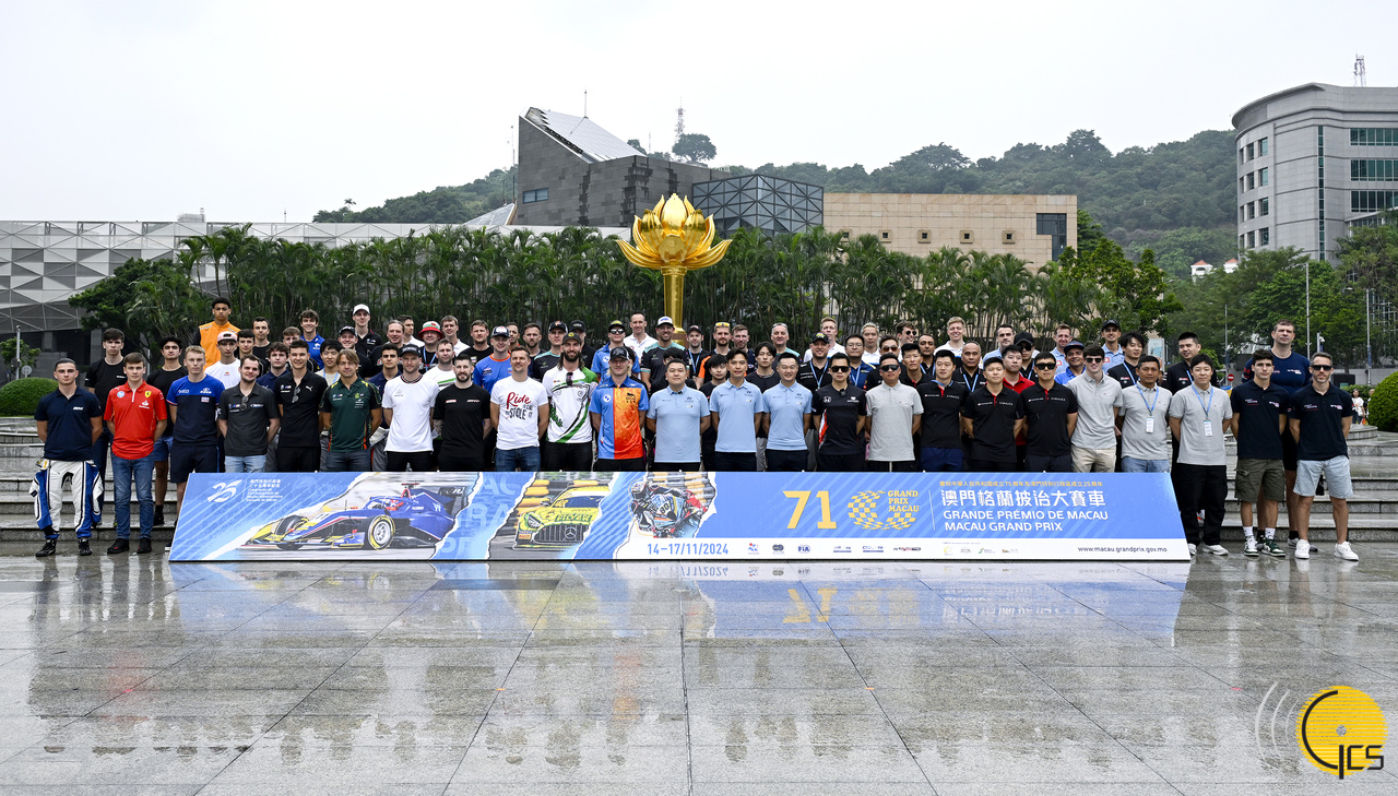Group photograph of racers taking part at the “Celebration of the 75th Anniversary of the Founding of the People' s Republic of China and the 25th Anniversary of the Establishment of the Macao Special Administrative Region – 71st Macau Grand Prix”.