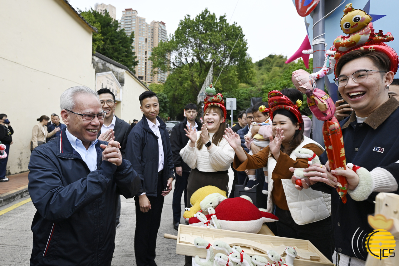 • The Chief Executive, Mr Sam Hou Fai, visits Temporary Pedestrian Zone in Taipa Village during Chinese New Year, extending festive greetings to passers-by and merchants.