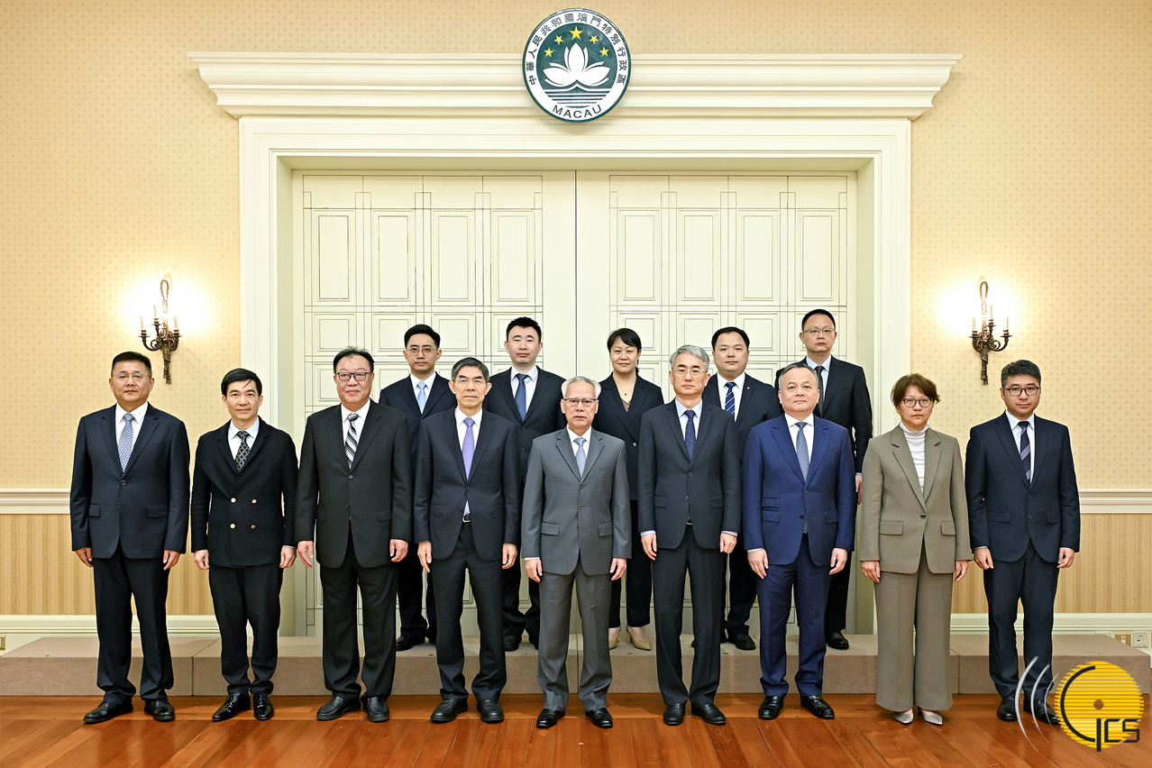 • The Chief Executive, Mr Sam Hou Fai, poses for a photograph with a delegation led by Vice Minister of the General Administration of Customs, Mr Wang Lingjun, during a meeting at the Government Headquarters in Macao.