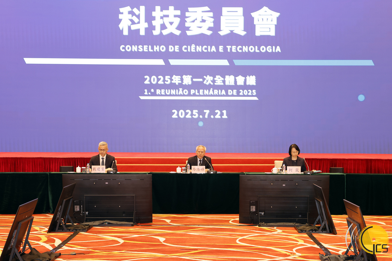 • The Chief Executive, Mr Sam Hou Fai, speaks at the first plenary meeting in 2025 of the Science and Technology Committee.