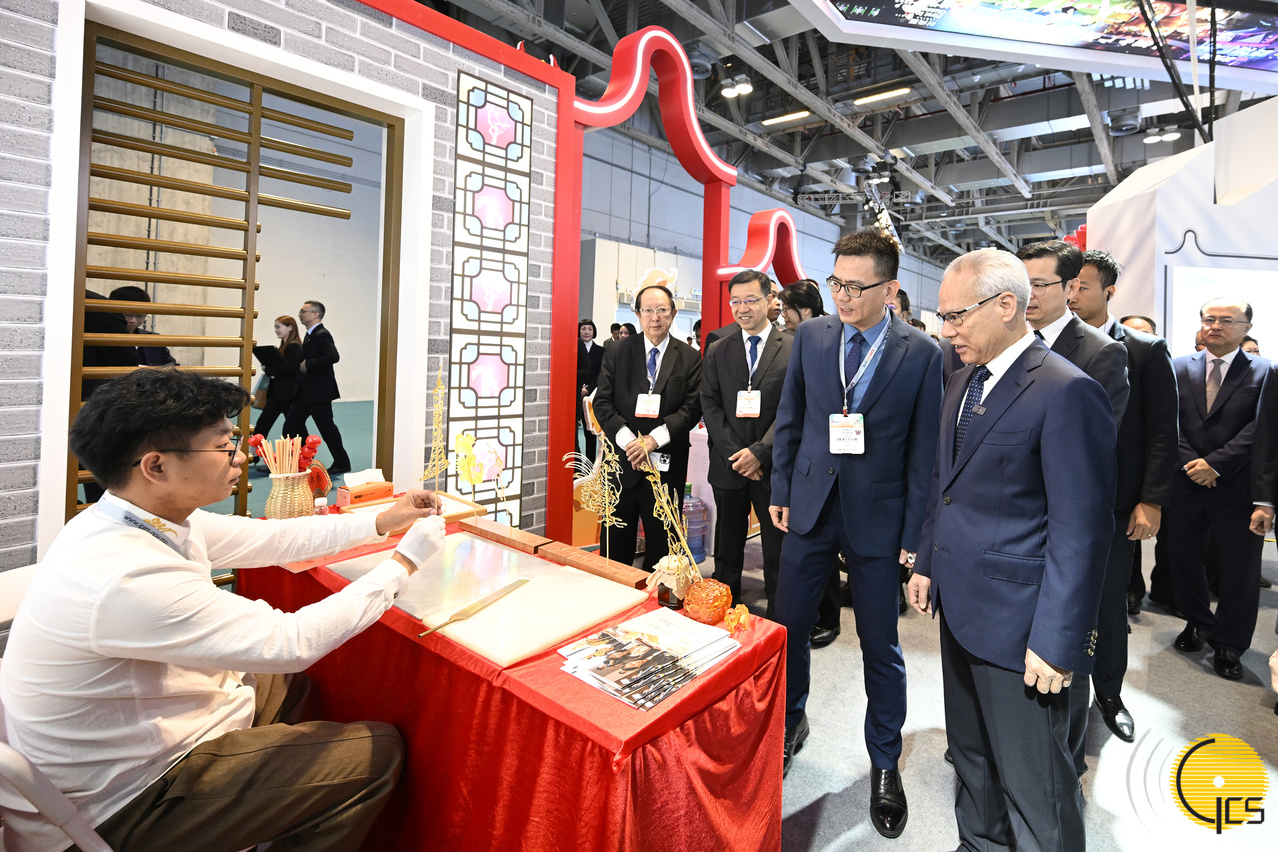 • The Chief Executive, Mr Sam Hou Fai, tours exhibition zone.