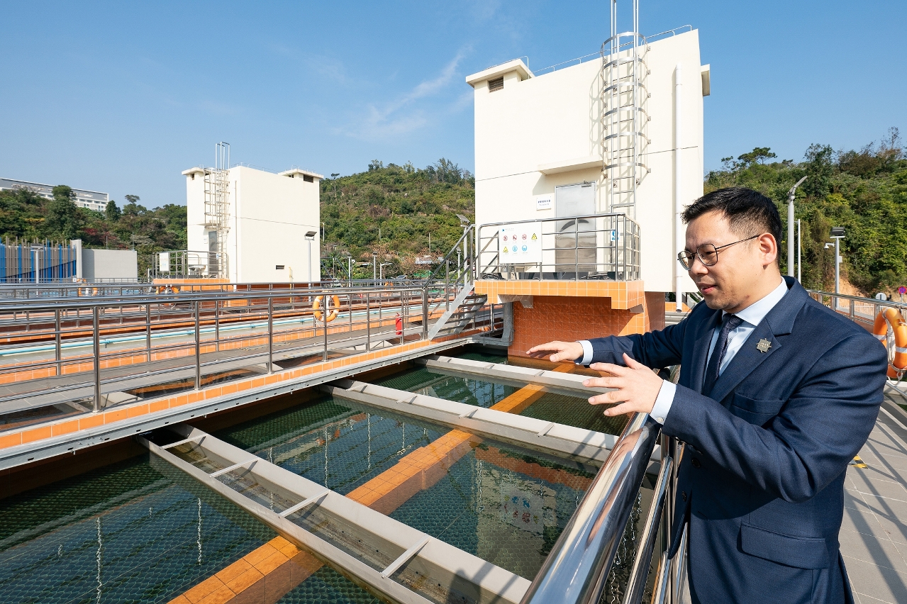 Jacky Lei, also a deputy general manager of Macao Water, shows how raw water is treated at Seac Pai Van Water Treatment Plant in Coloane | Photo by Lei Heong Ieong