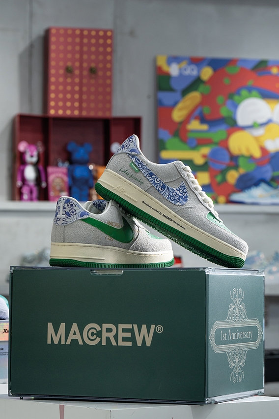 If they are keen to kick-start the design process, customers can discuss the options with Maccrew employees or sign up for a workshop. For the latter, participants either bring a pair of sneakers from home or buy them from the store (Nike Air Force 1, Nike Dunk SB, and Converse All-Star are all popular models, adds Choi). Maccrew employees then offer tools, such as paint and draft paper, and guide them step-by-step, from the blueprint to the finished product.