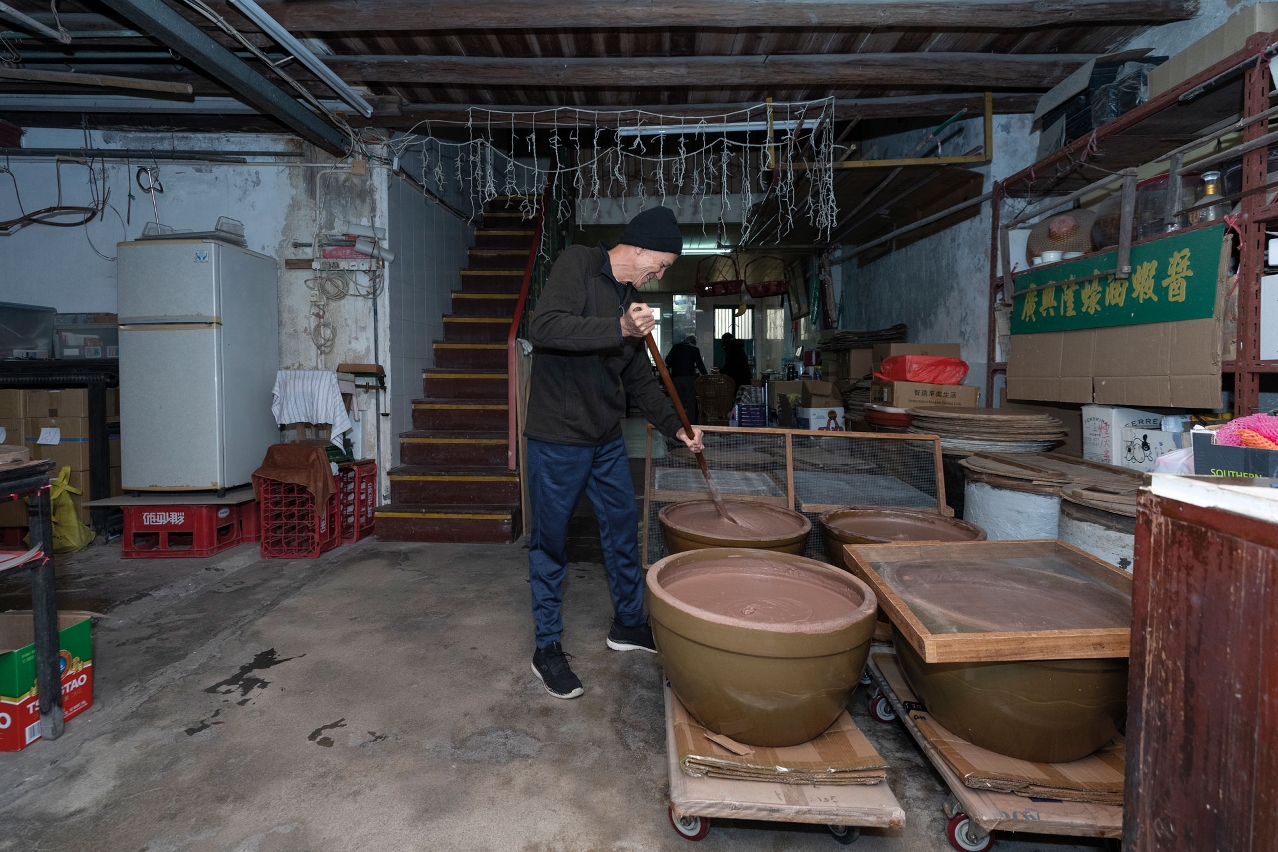 Today, in keeping with tradition, Kong Hing Loong eschews machinery. Its shrimp paste is sun-dried after fermentation, then packaged in jars that are labelled by hand. “Other people use machinery to produce 1,000 jars [of shrimp paste], but we produce 100 jars [by hand],” remarks Pong. Paolo, who was born in the shop, describes the shrimp paste-making process as a complex – even arduous – art that requires intense attention to the weather, ingredients and moisture.