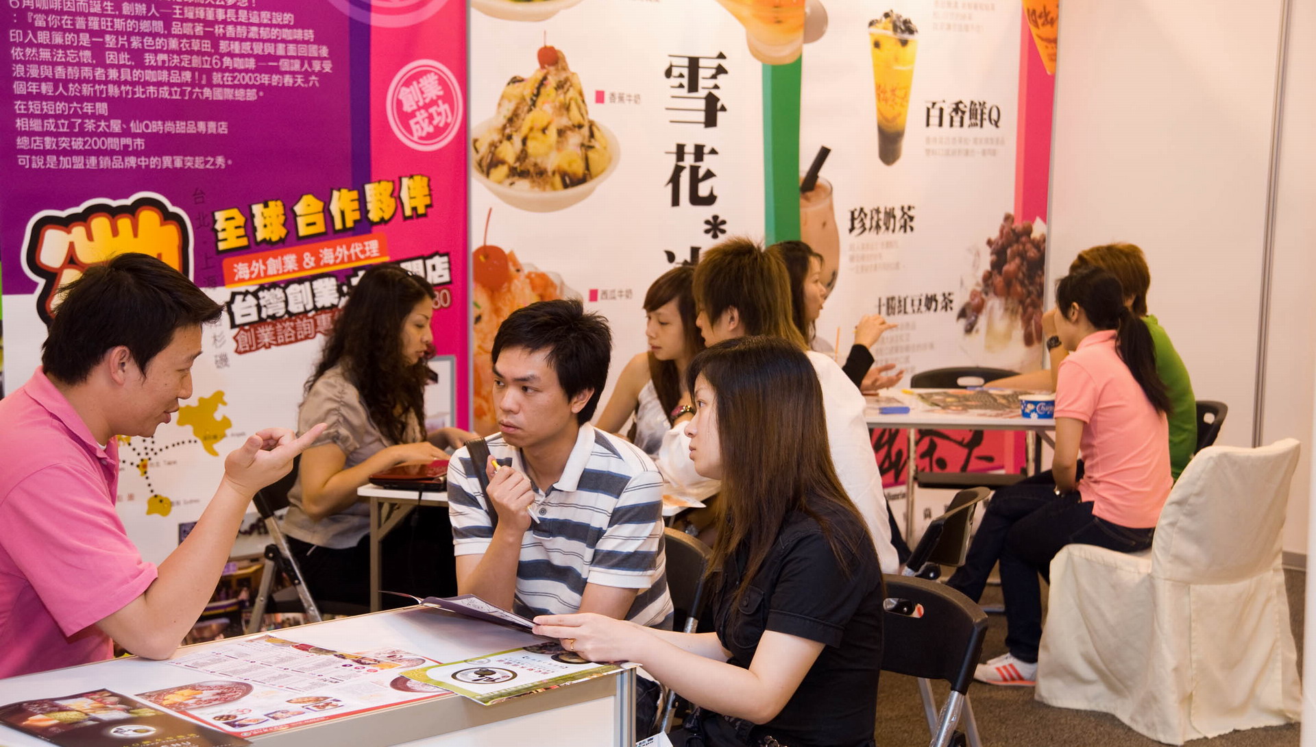 Macao Franchise Expo (MFE) ended today (4 July), with satisfactory results. The last day of the event was open to all, so that the small and medium-sized enterprises and the general public could participate in the activities. A total of 4800 visitors were registered in the two-day event. There were altogether 883 sessions of business matchings, and 16 cooperation and franchising agreements were signed at the venue, including those related with ready-to-wear, restaurant, environmental protection and energy conservation products, mango wine, decorative lighting, mineral water, fire equipment, casual shoes, white wine and agency and sale of environmental flooring, setting-up of food technology and sale point, organizing of preparatory committee, development of environment products and others. Cooperation counterparties were from Mainland China, Macao, Hong Kong, Taiwan, Portugal, South Korea and the Philippines, amount involved exceeded 100 million Patacas. There were altogether nine professional promotion seminars and one forum, attended by over 400 persons.