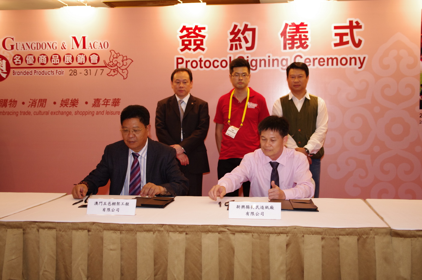 The Organisers concluded a total of 210 business matching and 1 protocol today. The protocol on “recycled paper” was signed between the Macao and Guangzhou participants, namely the Wuyi (Macau) De Engerharia De Andaime Sociedade Unipessoal Limitada and the Xingmin Papermaking Co. Ltd. of Xinxing County, Guangzhou.