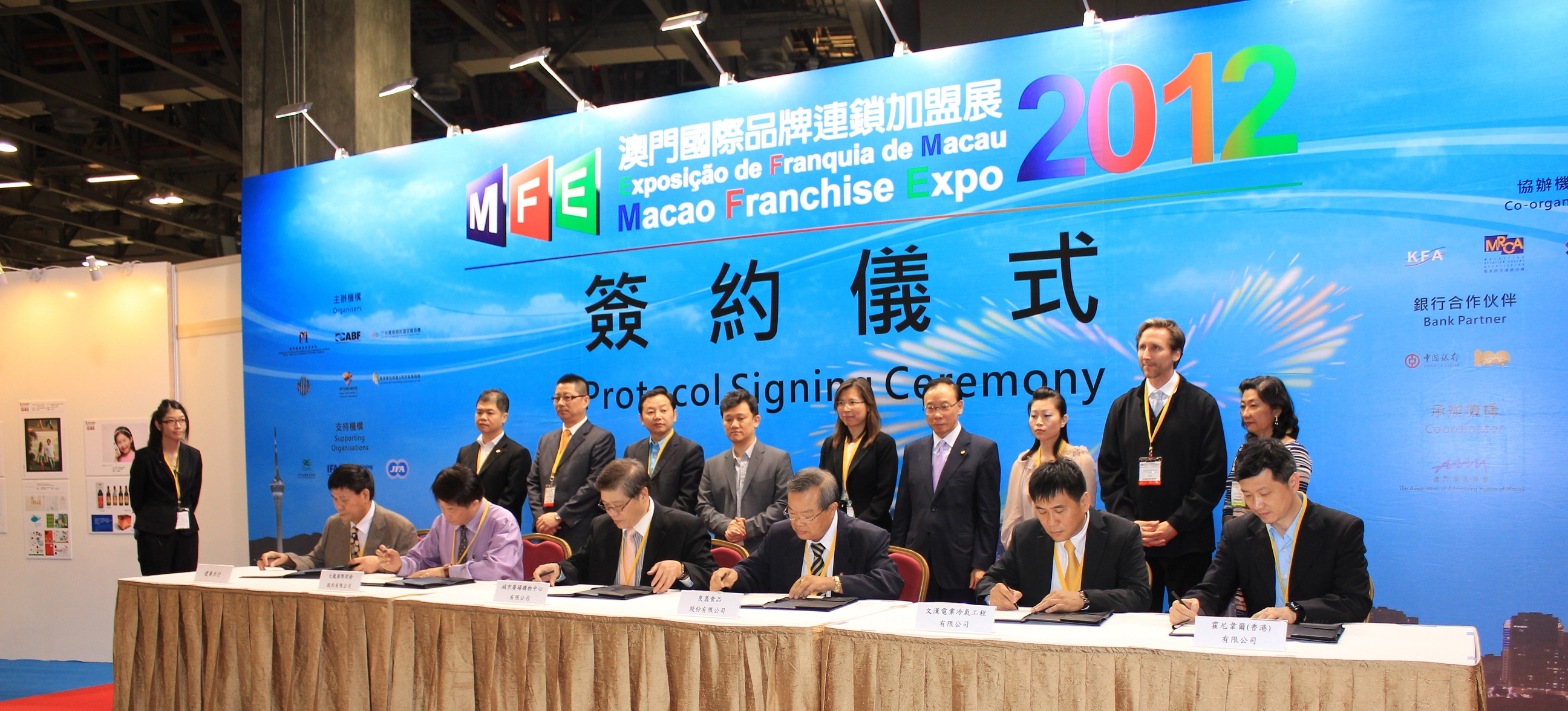 632 business matching sessions were arranged for the second day of the 2012MFE, resulting in the signing of nine cooperation protocols, as follows: Franchise agreement on Introducing Taiwanese Baking Technique, Agent of Central Air-Conditioning Accessory, Agreement on Establishment of Meet Fresh Franchise Store, Agreement on Establishment of Muse Fashion and Letter of intention of Sales Agents f Egg Tart. The signing parties range from Mainland China, Hong Kong, Taiwan, Mexico and Macao.