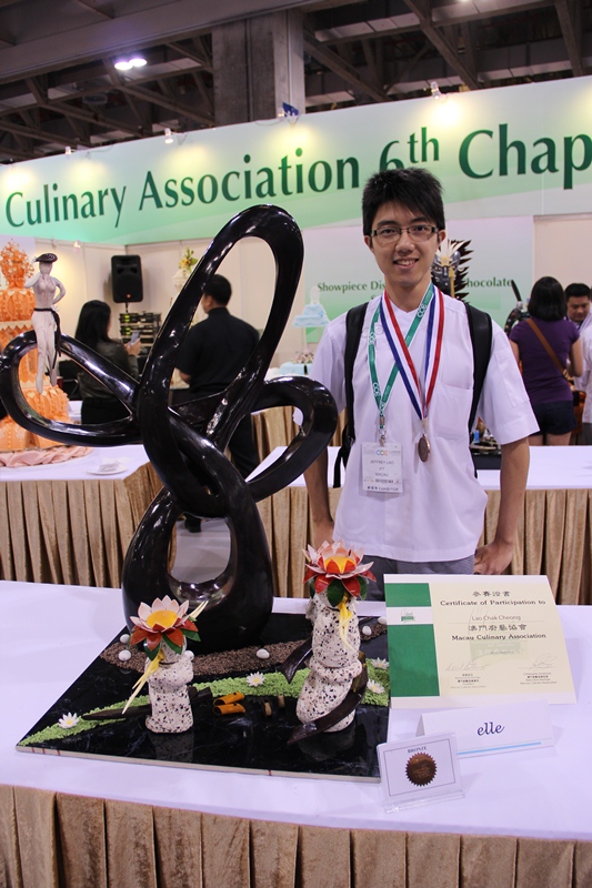 Three pastry team members of the Institute for Tourism Studies participated in the “Macau 6th Chapter Pastry Competition” organised by Macau Culinary Association. IFT teams had joined the categories of Pralines with Artistic Showpiece, Artistic Chocolate, Margarine or Sugar Showpiece and Bread Display. It was very honorable that IFT Pastry Artisans Ronald Gonzales and Jeffrey, Chak Cheong Lao, won the bronze medal in Artistic Chocolate, Margarine or Sugar Showpiece and Pralines with Artistic Showpiece. Both of their showpieces were unique in style and flavour.
