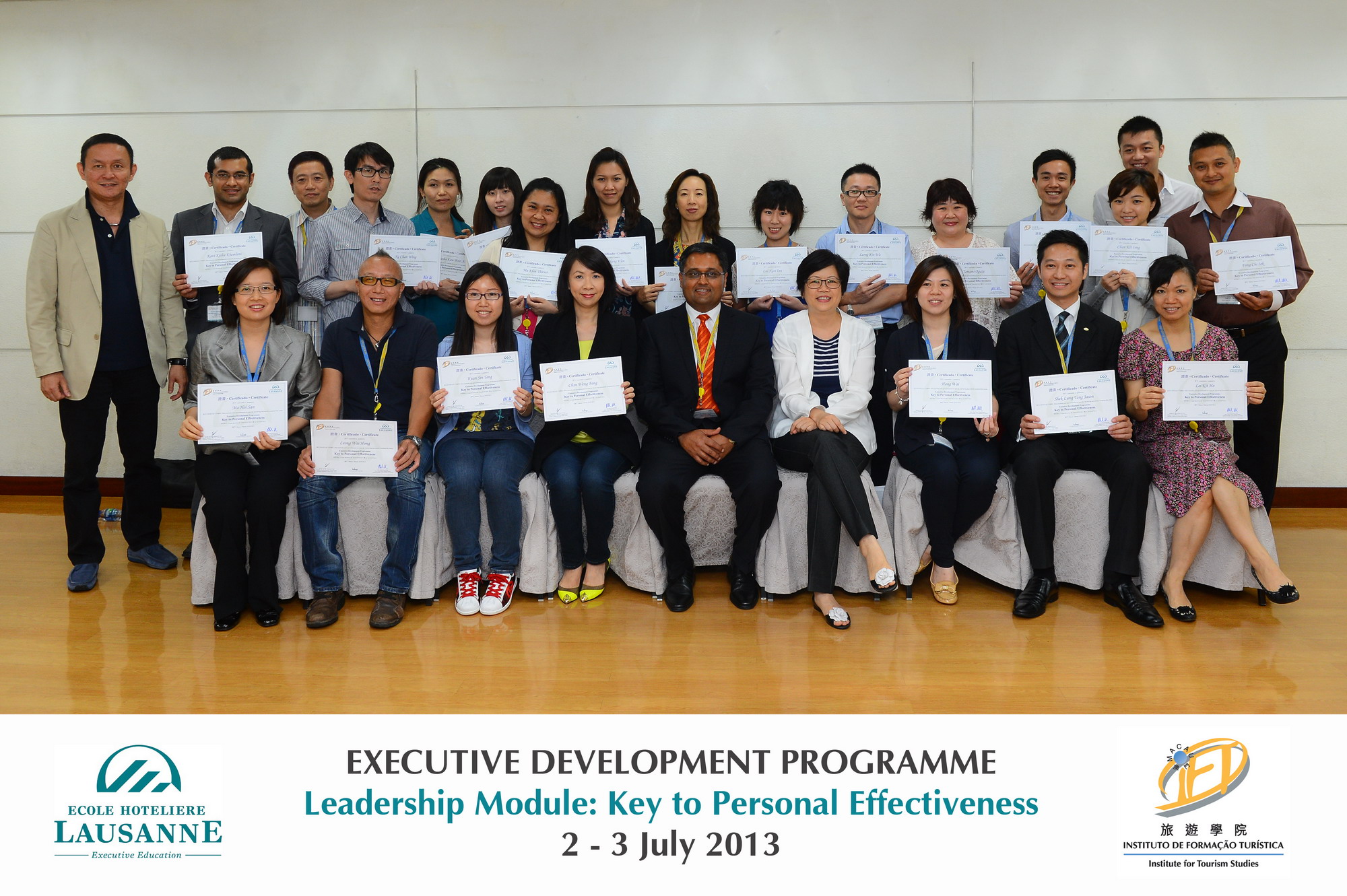 In order to provide diversified training opportunities for Macao’s local hotel industry professionals and enhance their management skills, Institute for Tourism Studies (IFT) and Ecole hôtelière de Lausanne (EHL), Switzerland co-orgainsed a two-day Executive Development Programme on Leadership Module: Key to Personal Effectiveness on 2 and 3 July. The programme helped participants to understand that their perceptions of the world, work and the other people in their lives are affected by past experiences, their expectations and where they place their priorities. Their level of performance and overall team working results can be significantly impacted by increased self-understanding and understanding of others, by enhancing their ability to adapt and by improving their ability to connect with others in both personal and work theatres. The programme attracted 23 professionals of local hotels and mega resorts to participate.