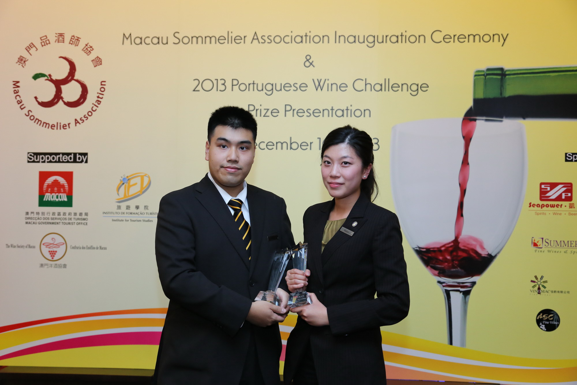 Maggie, Mak Weng Ian and Tommy, Chan Tat Ian, alumni of Institute for Tourism Studies (IFT), won the Champion and the Best Local Talent Award respectively at the 2013 Portuguese Wine Challenge. The competition was hosted by the newly-formed Macau Sommelier Association (MSA) aims to raise the level of sommeliers’ knowledge and skill, also to serve as a platform of idea exchange among the members. While promoting Portuguese wines, the competition will also promote a culture of responsible drinking by highlighting the benefits of wine drinking as a part of a healthy diet and lifestyle.