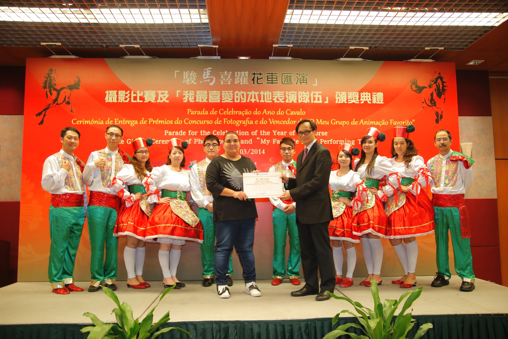 Prize Giving Ceremony of Photo Contest and “My Favorite Local Performing Team” for the “Parade for the Celebration of the Year of the Horse” was held at Tourism Activities Centre today (18 March). “Heart in Macau” Portuguese Folk Dance Association was awarded “My Favorite Local Performing Team”.