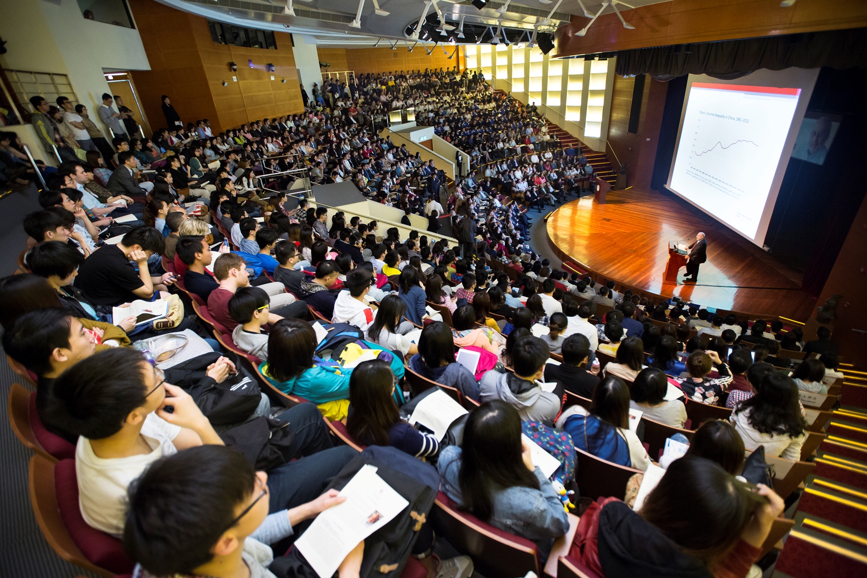 Prof. Stiglitz thinks that each aspect of inequality has its causes, including discrimination, social customs and conventions, laws and regulations, and globalisation. He believes that society should ensure equal opportunities for all children. “What we mean by equality of opportunity is that a child, no matter where is born, no matter who his parents are, will have the ability to live up to his potential,” said Prof. Stiglitz. “But in fact when we look at our society, it’s not the case.” Prof. Stiglitz discussed how inequality affected young people’s upward mobility, citing examples of some students in the United States who, because their parents are not wealthy and well-connected, had to borrow money to go to college, only to find that after graduation they couldn’t afford unpaid internships, and ended up waiting tables in the restaurants. He mentioned that Christine Lagarde, managing director of the International Monetary Fund, said in her recent talk to leading Chinese officials in Beijing that more inequality leads to lower economic growth and more economic instability, and expressed concern that China ought to be doing more to address the problems of inequality.