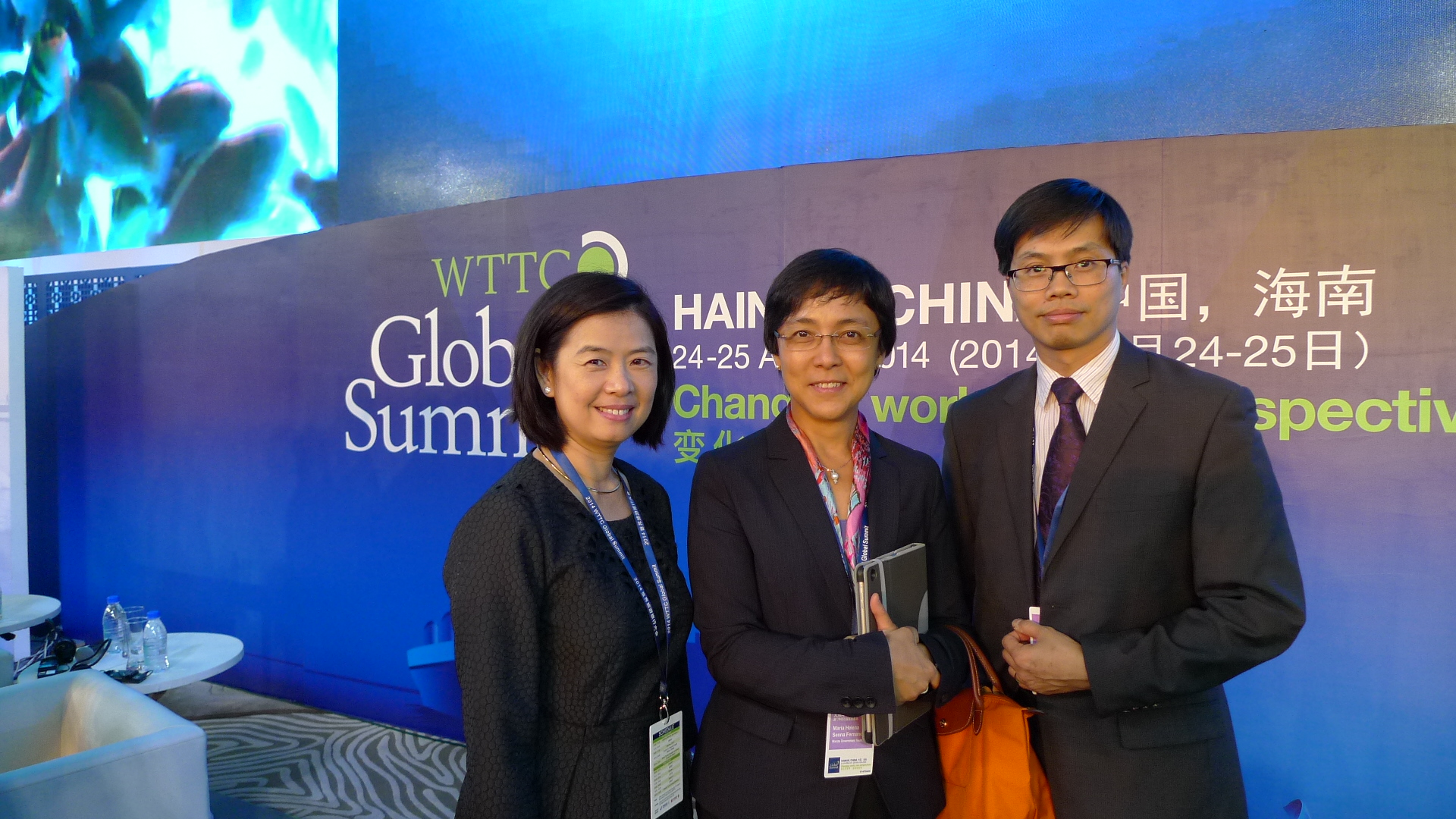 The World Travel & Tourism Council (WTTC) is holding its 14th Global Summit in Hainan on 23 – 25 April 2014, an event which gathers tourism industry leaders and business elites from around the world to discuss the pressing issues faced by the global tourism industry today; Director of Macau Government Tourist Office (MGTO), Maria Helena de Senna Fernandes and Adviser of the Office of the Secretary for Social Affairs and Culture, Ng Peng In attend the event in Sanya along with other delegates for exchange and learning opportunities.