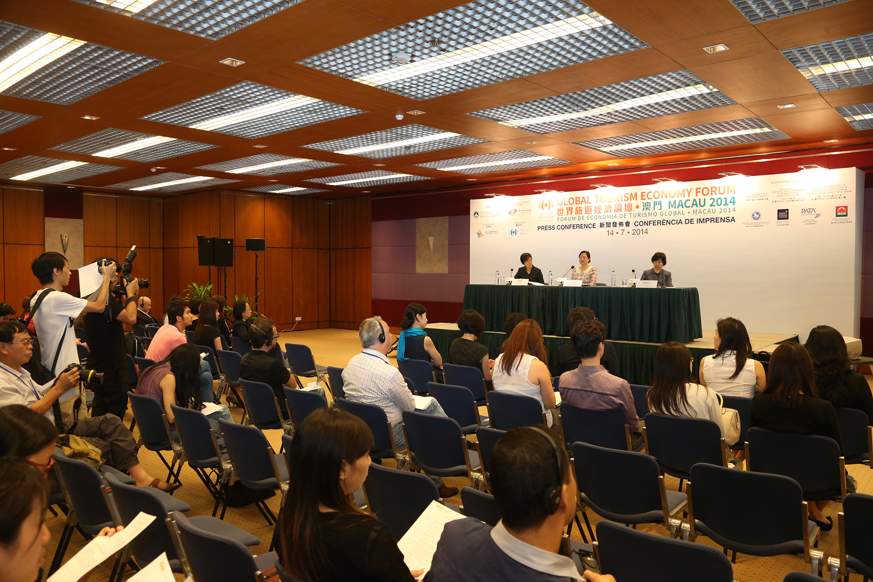 The third edition of Global Tourism Economy Forum (“GTEF” or “the Forum”) is scheduled to take place at the Venetian Macao from 27-29 October 2014 around the theme “Maritime Silk Road - From Macau We Begin”. A press conference was held at the Tourism Activities Centre in Macau today (14 July) to announce details of the Forum. Chief of Office of the Secretary for Social Affairs and Culture of the Macau SAR Government, Cecília Cheung and Director of Macau Government Tourist Office (MGTO), Maria Helena de Senna Fernandes both delivered a remark in the conference, followed by an introduction presented by Vice Chairman and Secretary-General of GTEF, Pansy Ho.