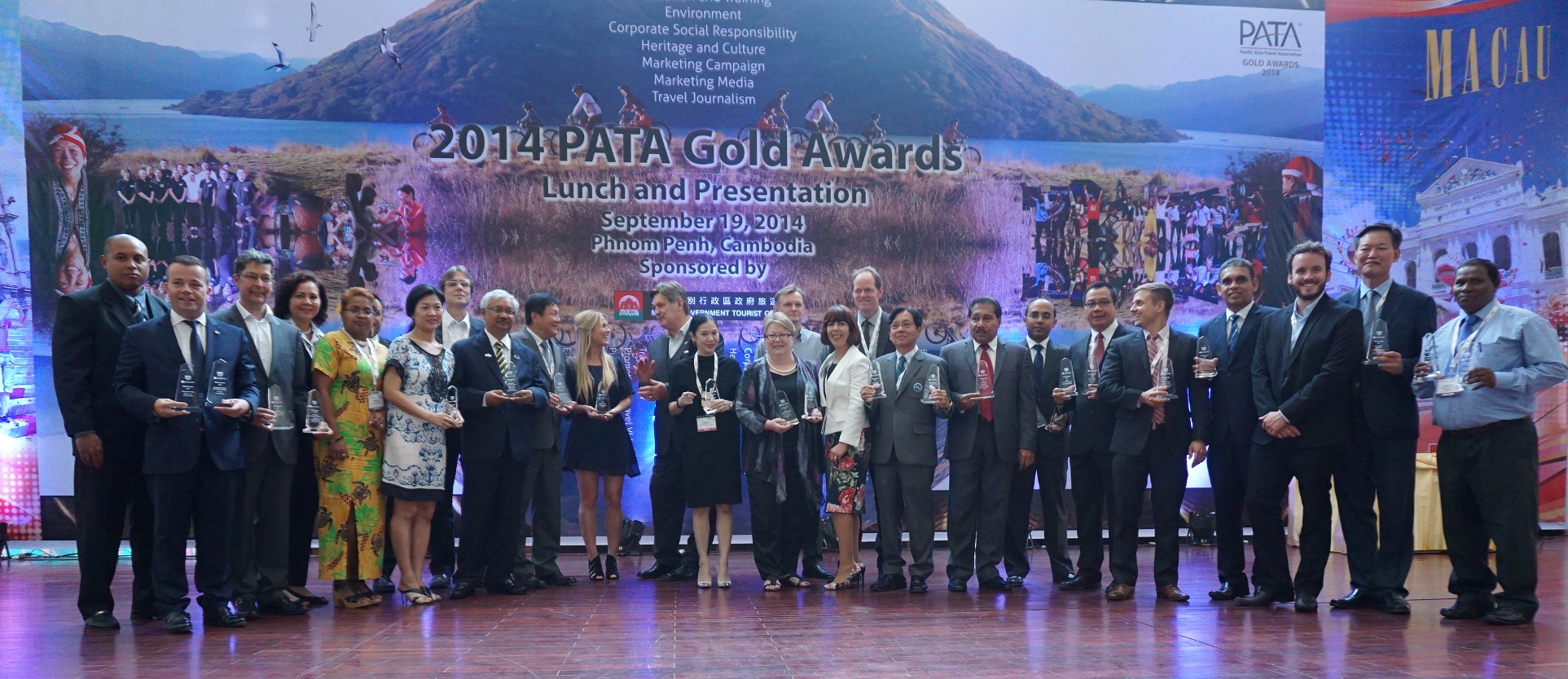 The Pacific Asia Travel Association (PATA) Gold Awards Luncheon and Awards Presentation, sponsored by Macau Government Tourist Office (MGTO), was held today (the 19th) in Phnom Penh, Cambodia, during PATA Travel Mart 2014.