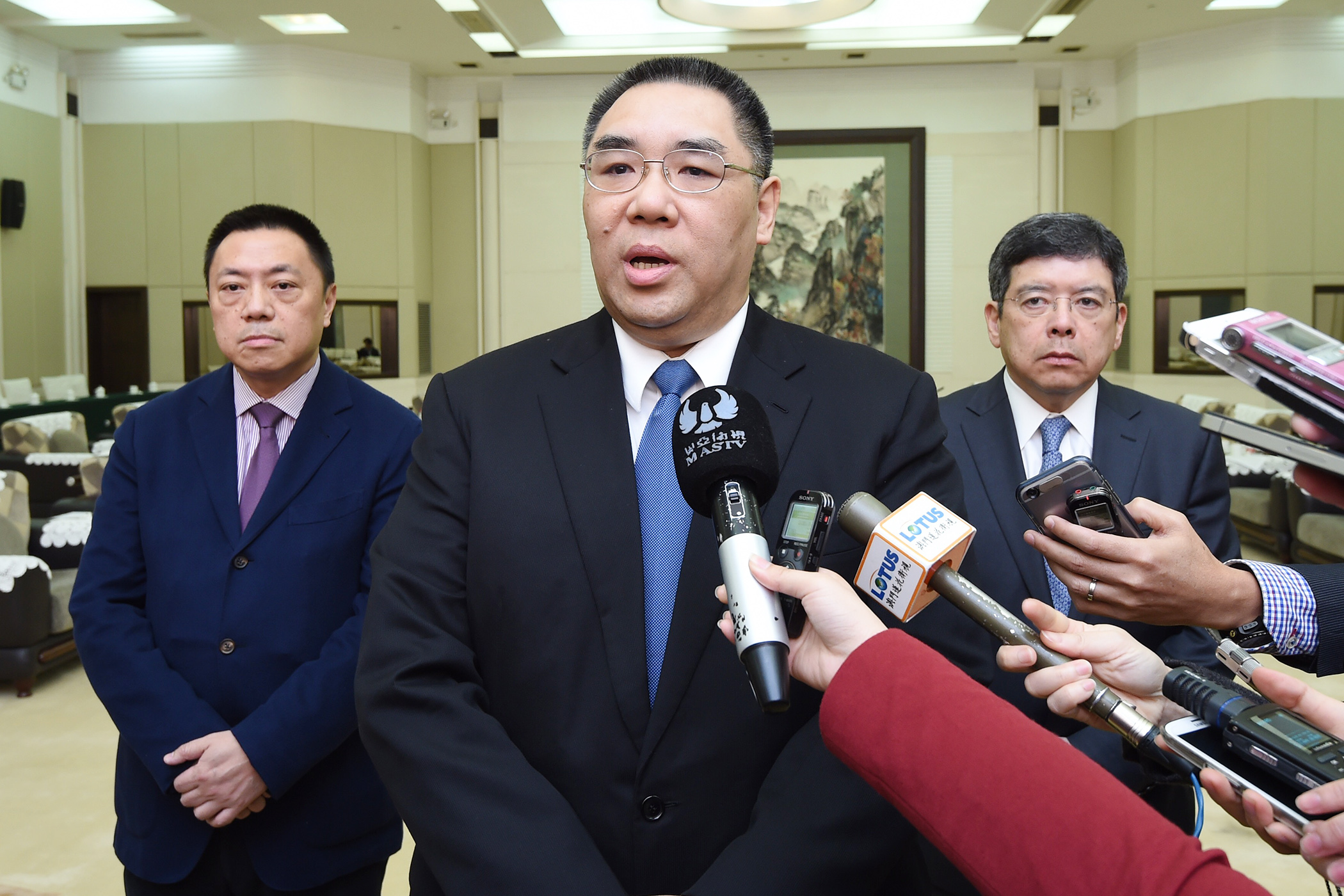 Speaking to reporters in Guangzhou after meeting with the Secretary of the Guangdong CPC Provincial Committee, Mr Hu Chunhua, and the Governor of Guangdong province, Mr Zhu Xiaodan today, Mr Chui said both governments were confident in development on trade liberalisation and structural reforms to facilitate the projects in the free trade zones, development of Hengqin of Zhuhai and Nansha of Guangzhou.