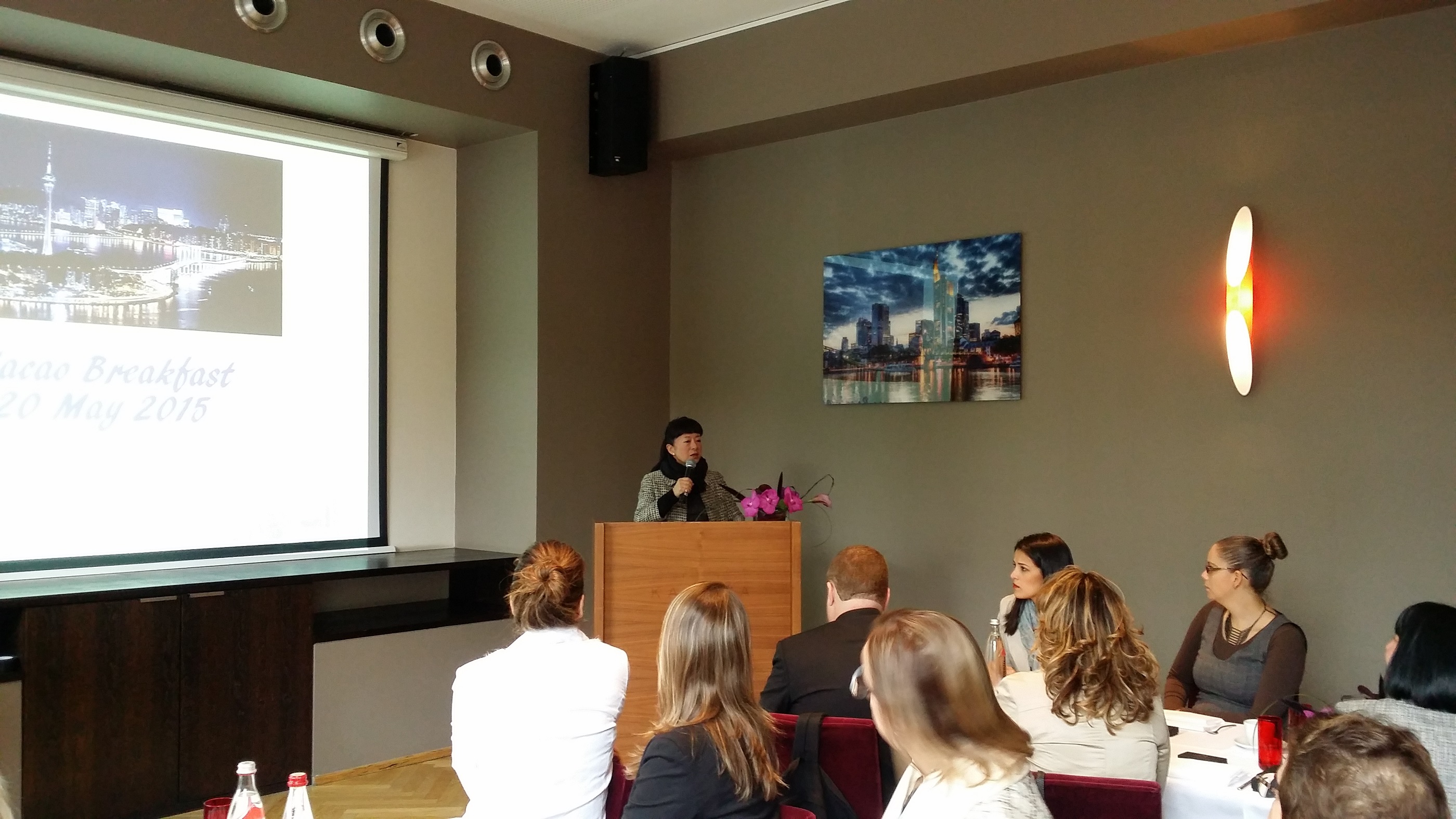 During the period of IMEX, IPIM and Macao´s representatives of the convention and exhibition industry jointly organized in Frankfurt a “Macau Breakfast”, to promote the environment and the advantages of Macao´s convention and exhibition industry. Before an audience of more than 40 people, including event organizers, representatives of international business associations, destination management industry and, conference and public relations industry, Mrs. Irene V. K. Lau actively promoted the advantages of Macao´s convention and exhibition industry and the “One-Stop Service” provided by IPIM for MICE Bidding and Support in Macao, in a bid to attract the holding of more international events in Macao.