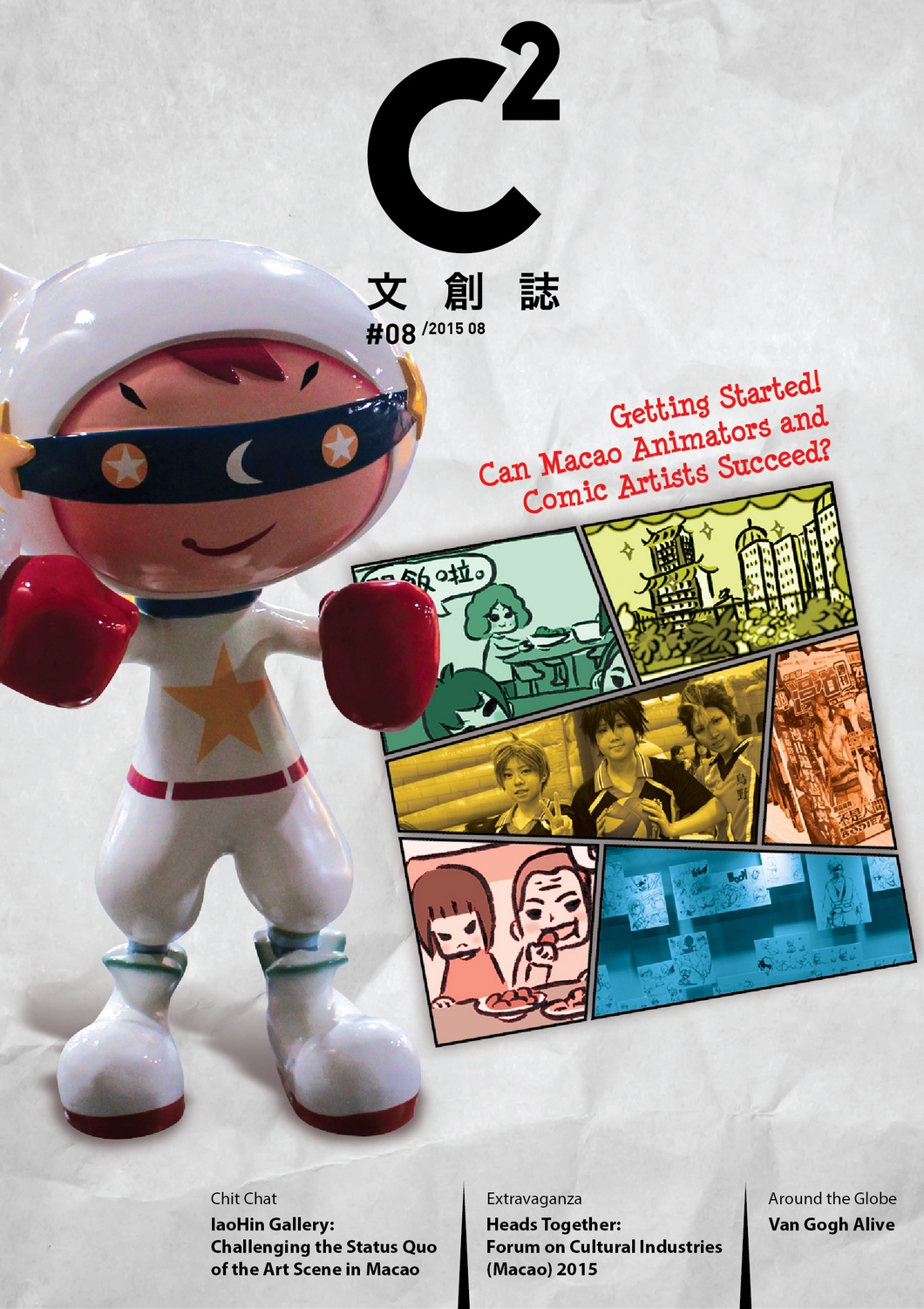 Macao’s animation and comics industry is still in its early developing stage; however, a number of talents can be found in the territory. In the section “Feature”, the founder of a Macao comics publishing company with weekly publications, Matthew Fong, and Macao fledgling comic artist of C - La in Macau, were invited to discuss how works from Macao can get into the Chinese animation and comic market. There isn’t much tradition of consuming artworks in Macao, and IaoHin Gallery is one of the few private commercial galleries in Macao. In this edition, “Chit Chat” invites the director of IaoHin Gallery, Florence Lam, to share her ideas on how a gallery can attract more people to appreciate art. “Extravaganza” wraps up the 2015 edition of the Forum on Cultural Industries (Macao), in which experts from all over the world shared their opinions and experiences on how to develop the cultural industries in Macao. Recently, the Van Gogh Museum has been providing consultancy services to private museums. Experts provide consultancy in areas such as the management of famous paintings and museum security systems. In “Around the Globe”, we learn how the Van Gogh Museum provides these services to extend its financial resources. In this edition of “Blogs”, columnists Cheong Sio Pang, Lio Chi Heng, Eugenia Lo, Lam Fai, SiSi Chang, Mu Yu and Ruby Chen share their unique perspectives on the development of artistic and cultural creations.